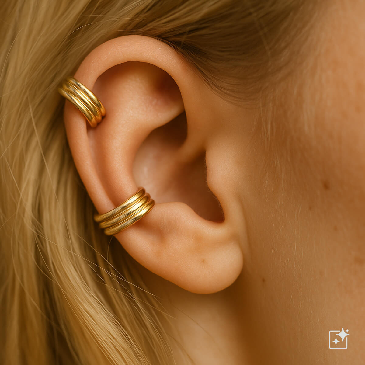 Kolmerivinen yhtenäinen rustokoru ear cuff 2kpl
