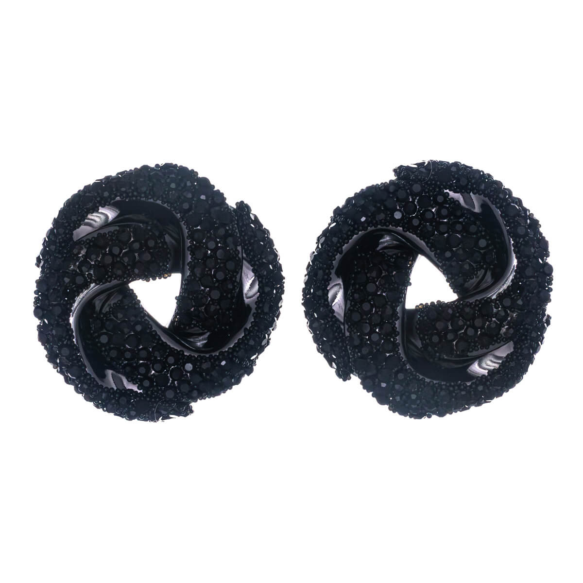 Kimaltelevat korvakorut ovat juhlien klassikko. Tässä mallissa tumman hopean värinen korvakoru on saanut mustan kimalluksen. Korvakoru on litteä solmutyylinen.