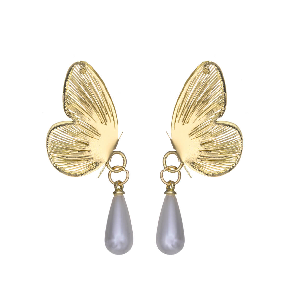 Perhos korvakorut helmiriipuksella (Teräs 316L)