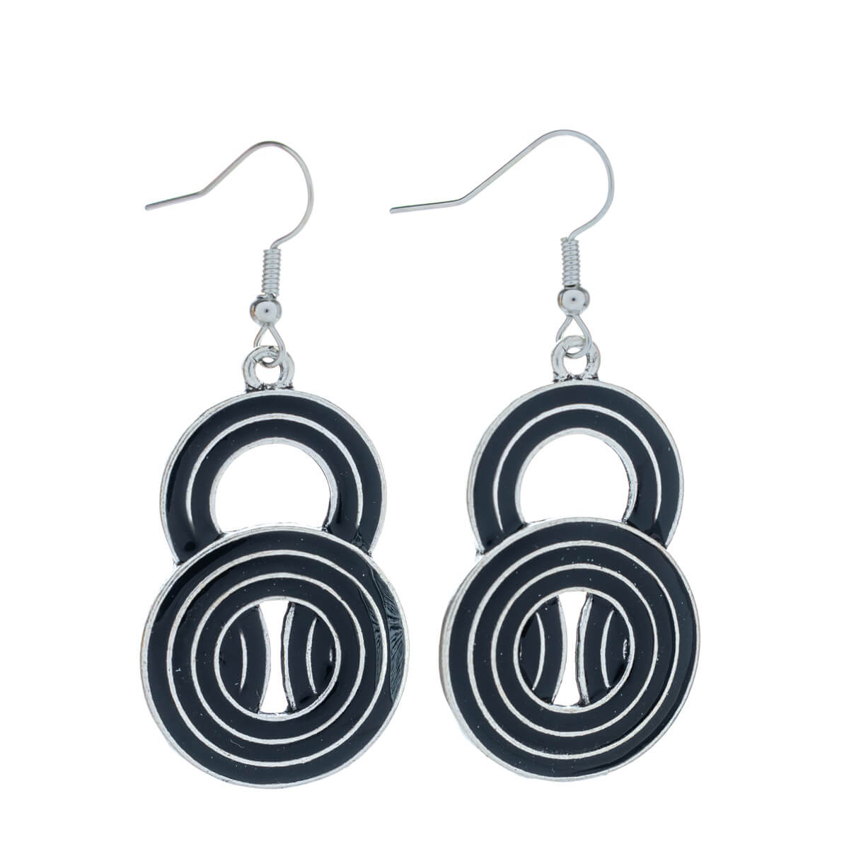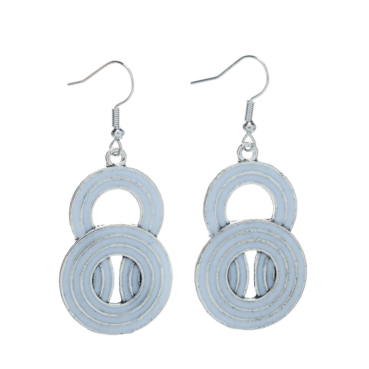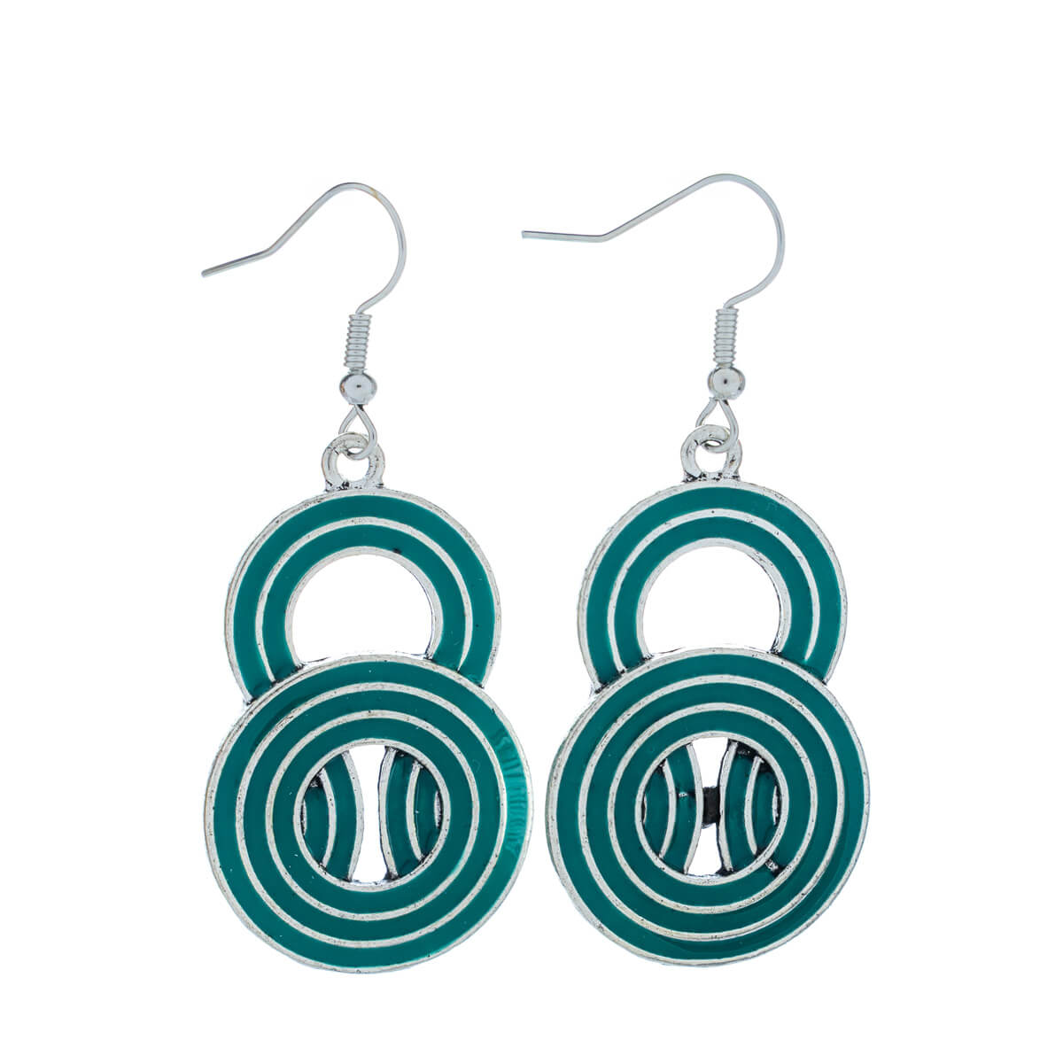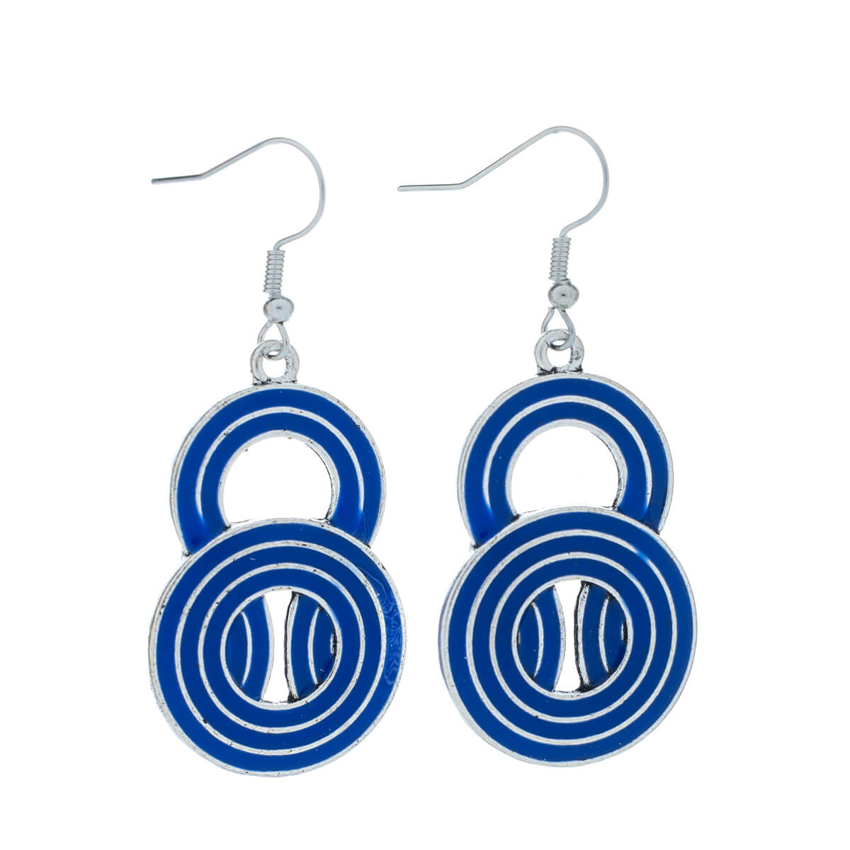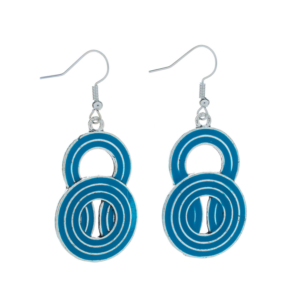 Värilliset roikkuvat korvakorut muodostuvat tässä mallissa kahdesta erin kokoisesta renkaasta.