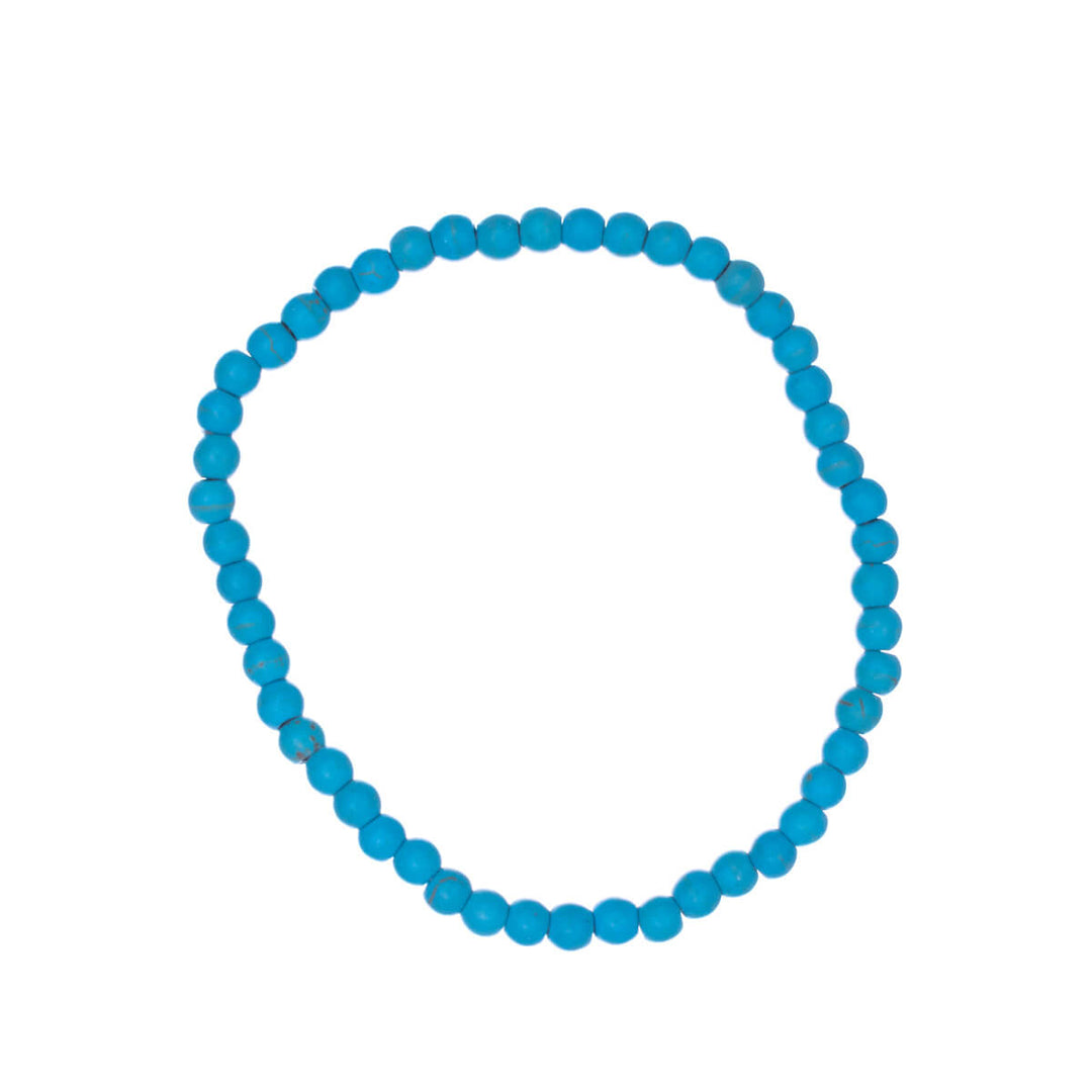 Tyylikkäät turkoosit kivihelmet ovat pujotettu vahvaan silikoninauhaan tässä korussa. Erillistä lukkoa rannekoruun ei tarvita.