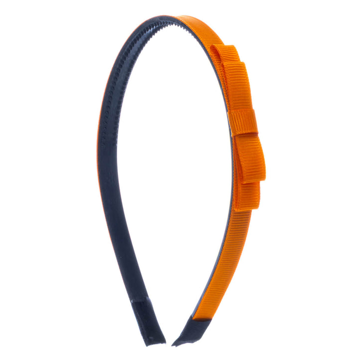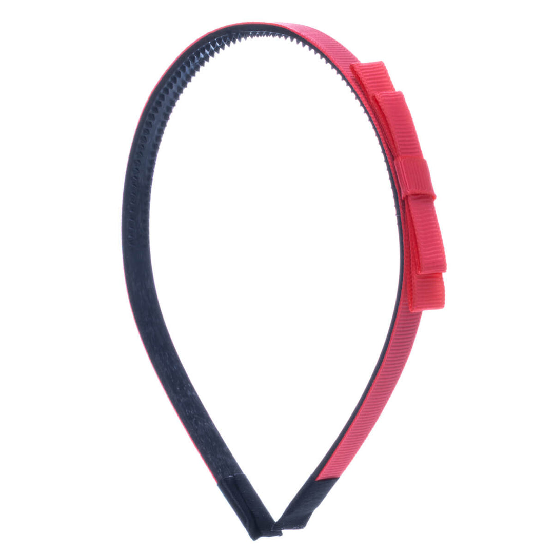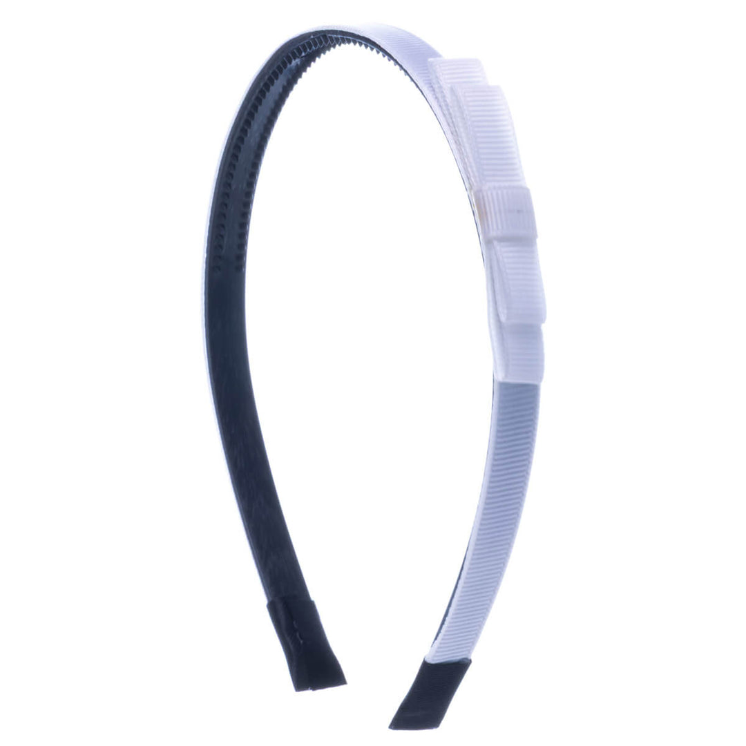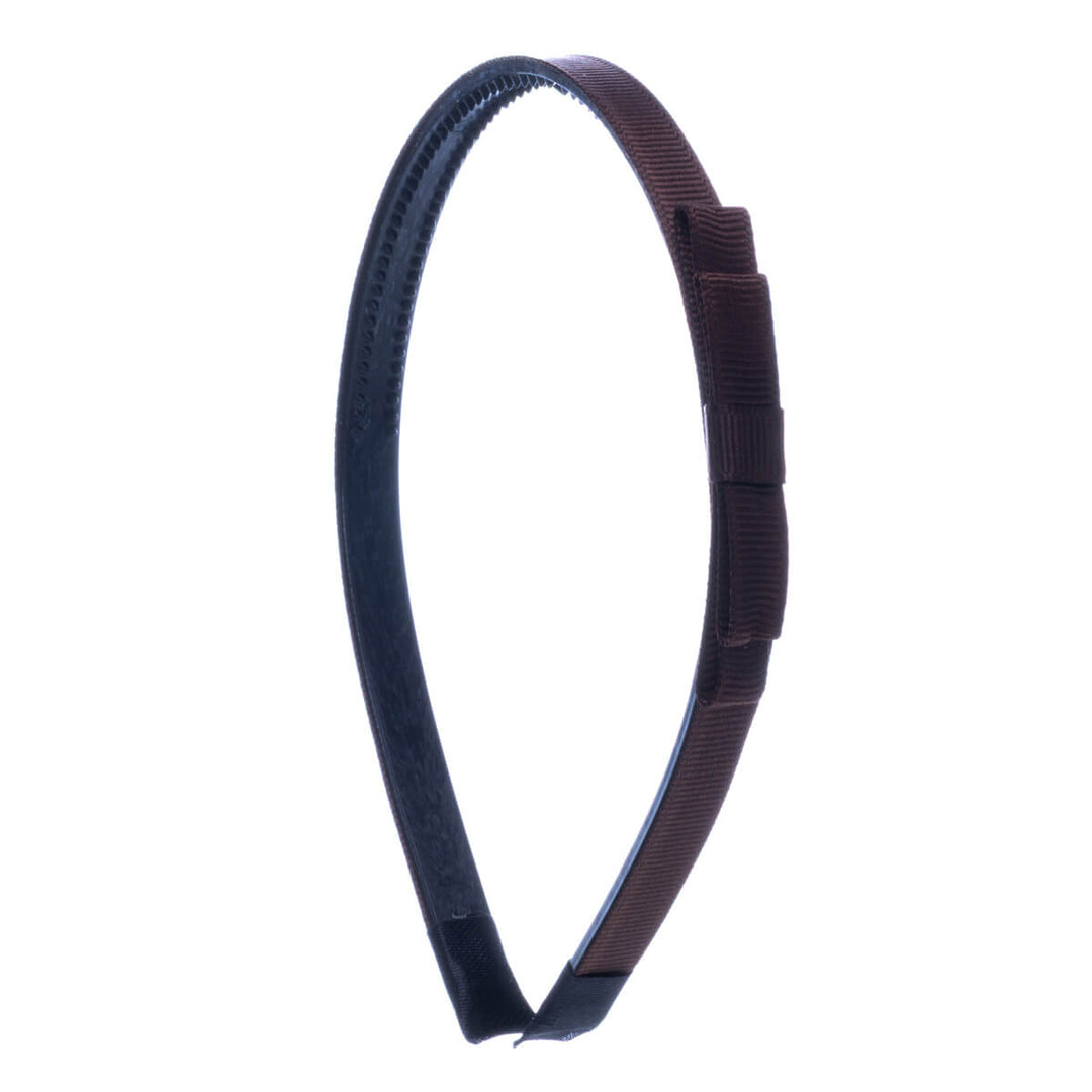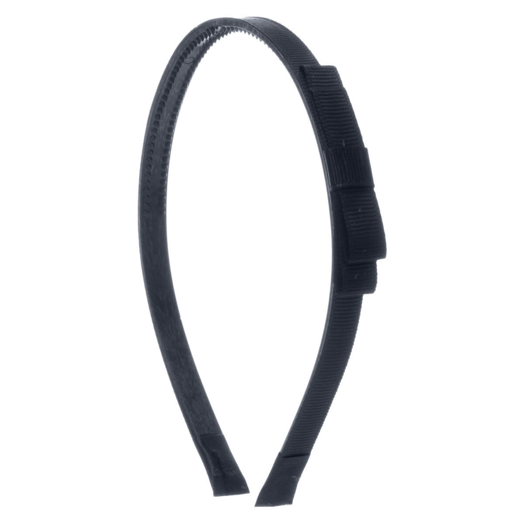 Kapea hiuspanta on kevyt ja miellyttävä käyttää. Rusetti on kevyesti pannan sivussa.