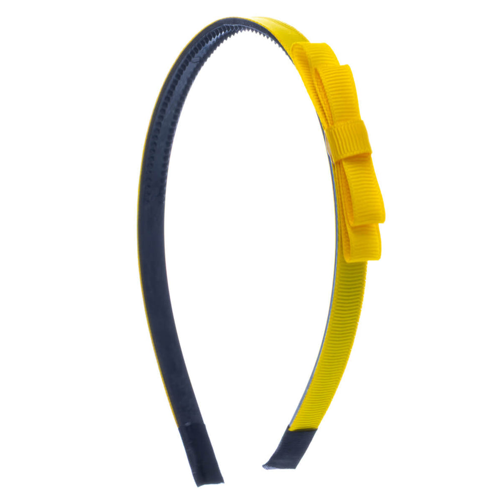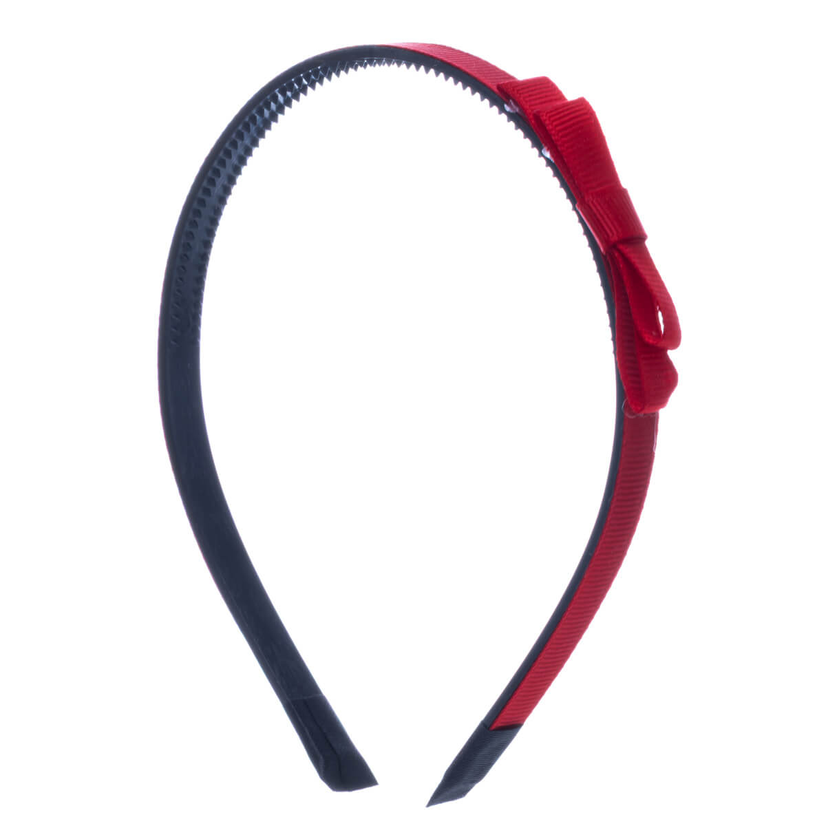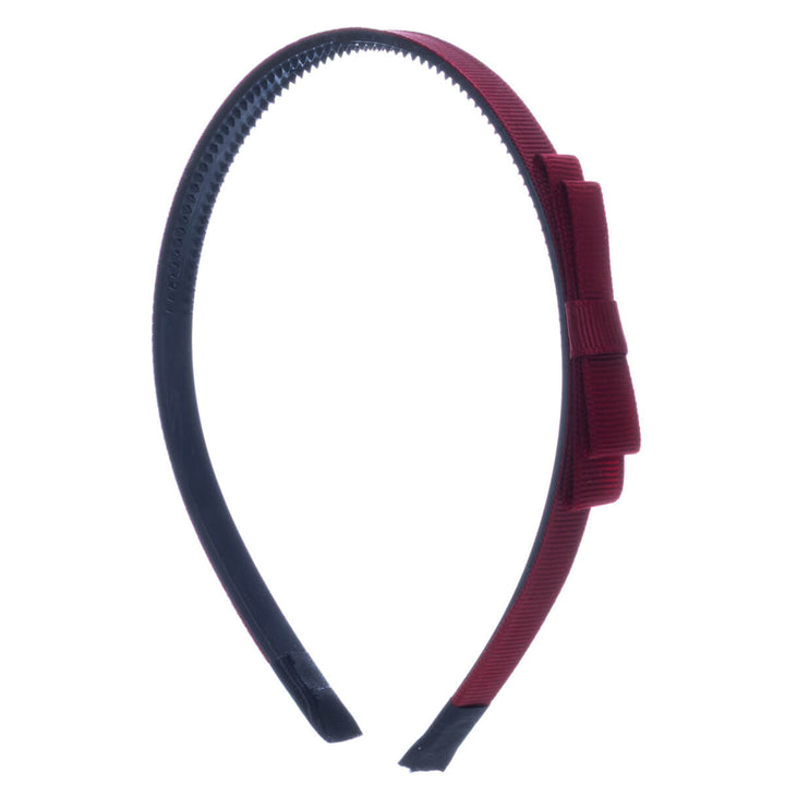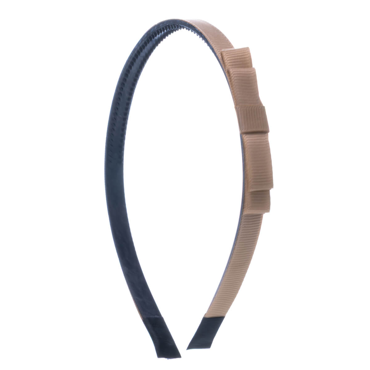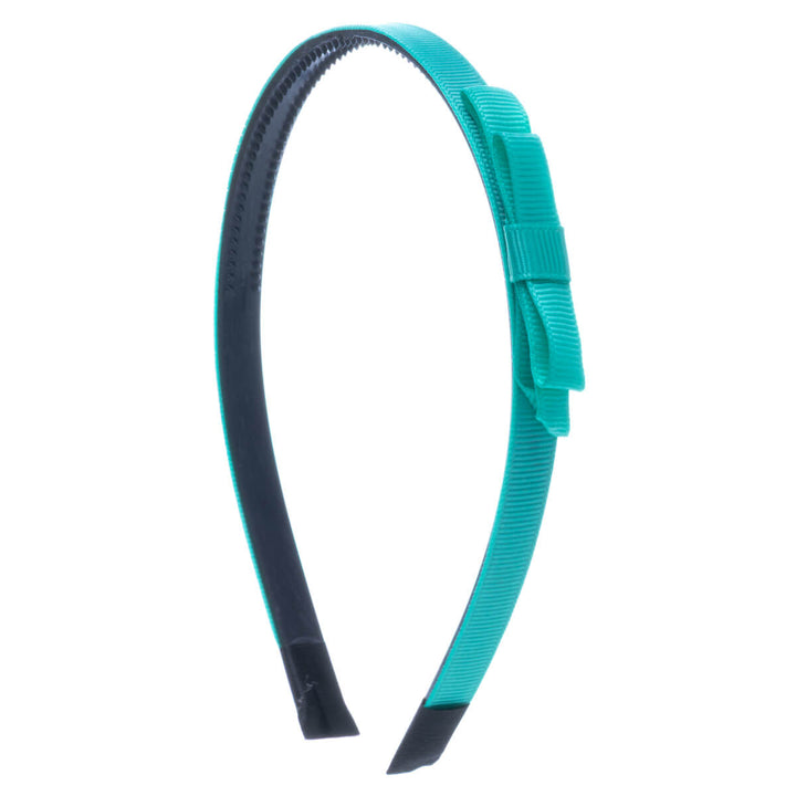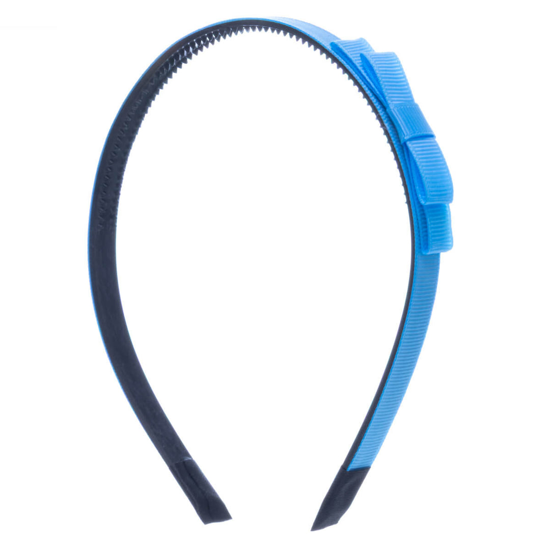 Kapea hiuspanta on kevyt ja miellyttävä käyttää. Rusetti on kevyesti pannan sivussa.
