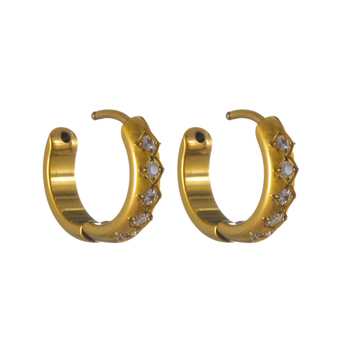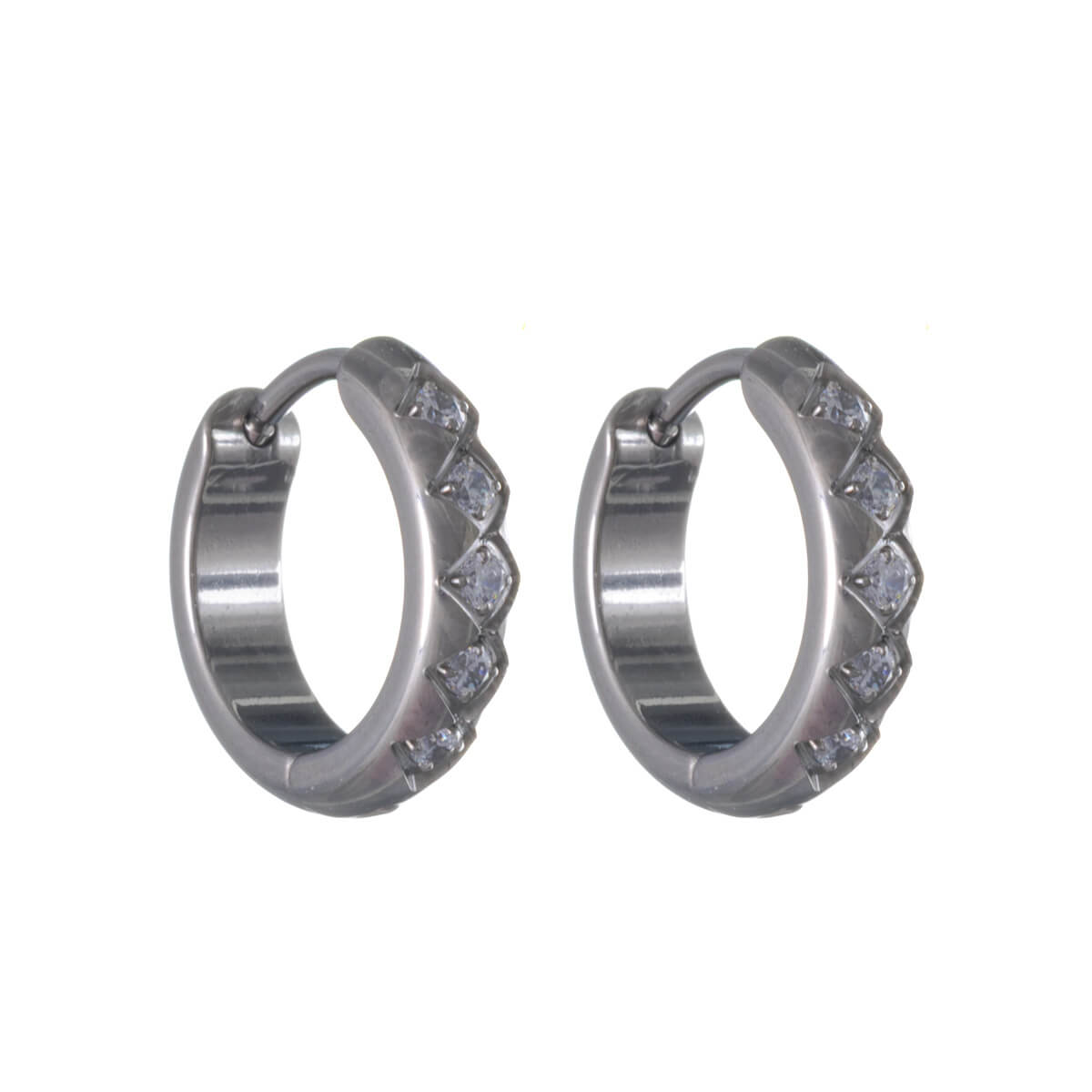Tyylikkäät titaani korvarenkaat zirkoniakivillä, joissa yhdistyvät ajaton muotoilu ja laadukas materiaali.