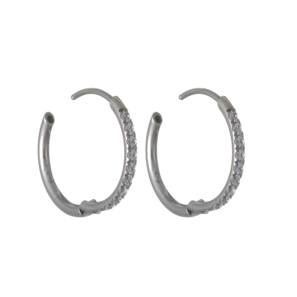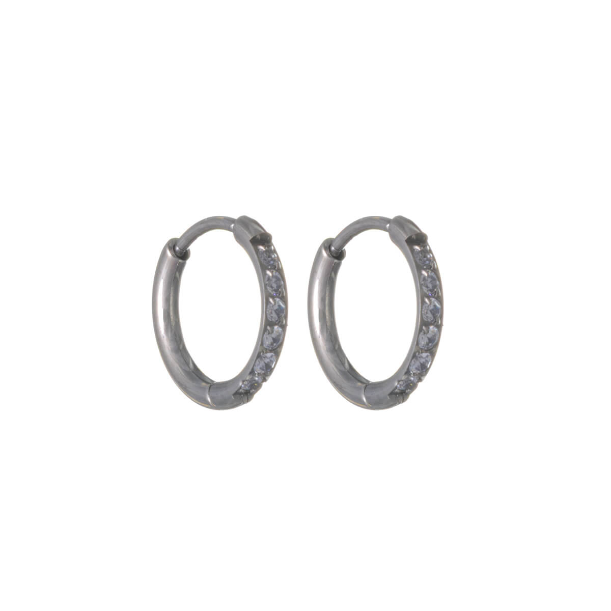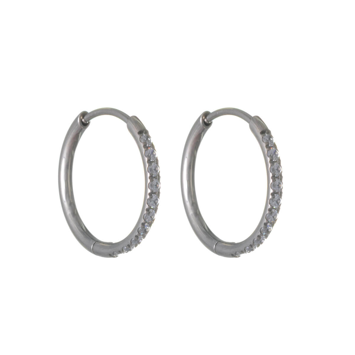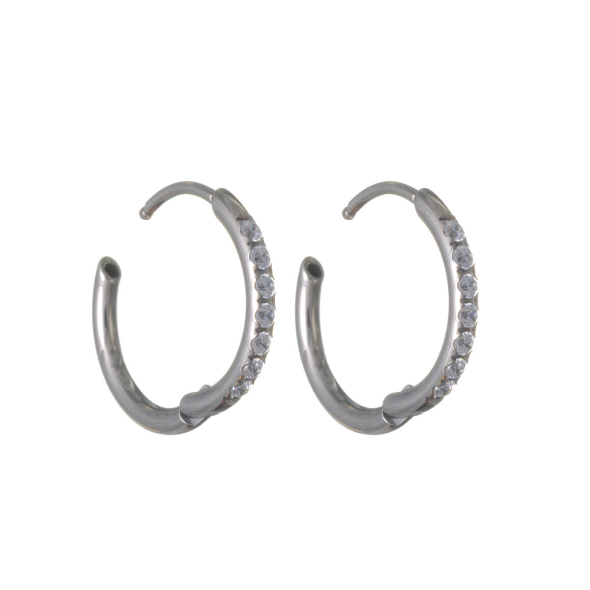 Tyylikkäät ja ajattomat titaani korvarenkaat zirkoniakivillä, joissa minimalistinen muotoilu yhdistyy hienostuneeseen säihkeeseen.
