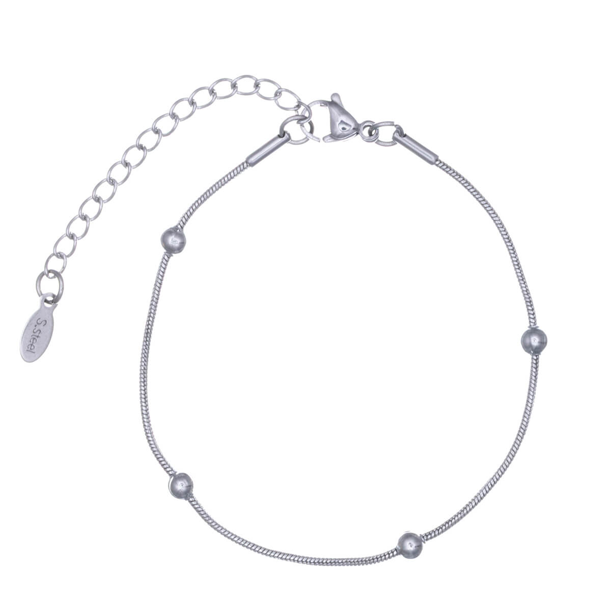 The thin bracelet is decorated with steel beads. Stylish and timeless, the design goes with almost anything. The bracelet is made entirely of surgical steel.