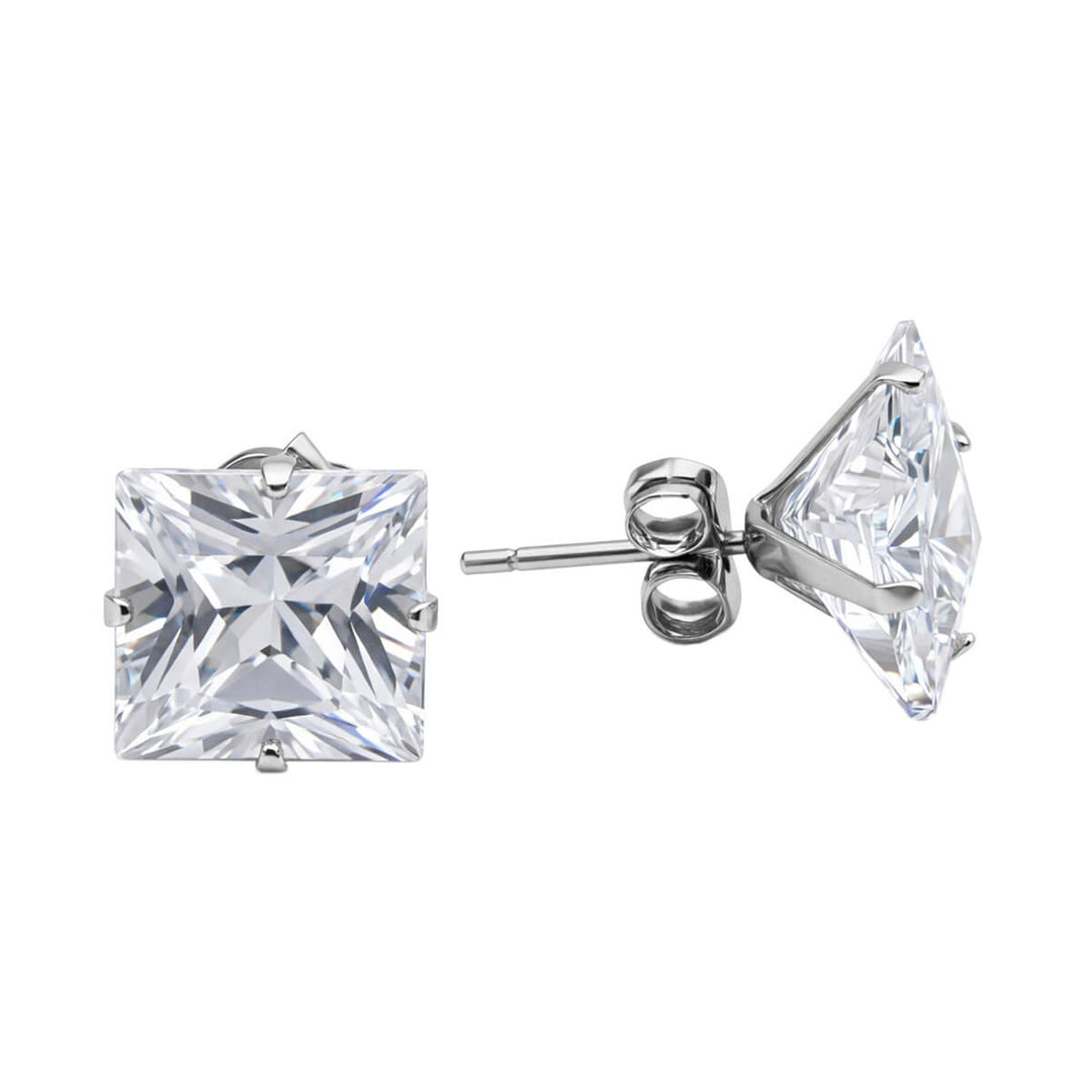 Square zirconia earrings 6mm (Steel 316L)