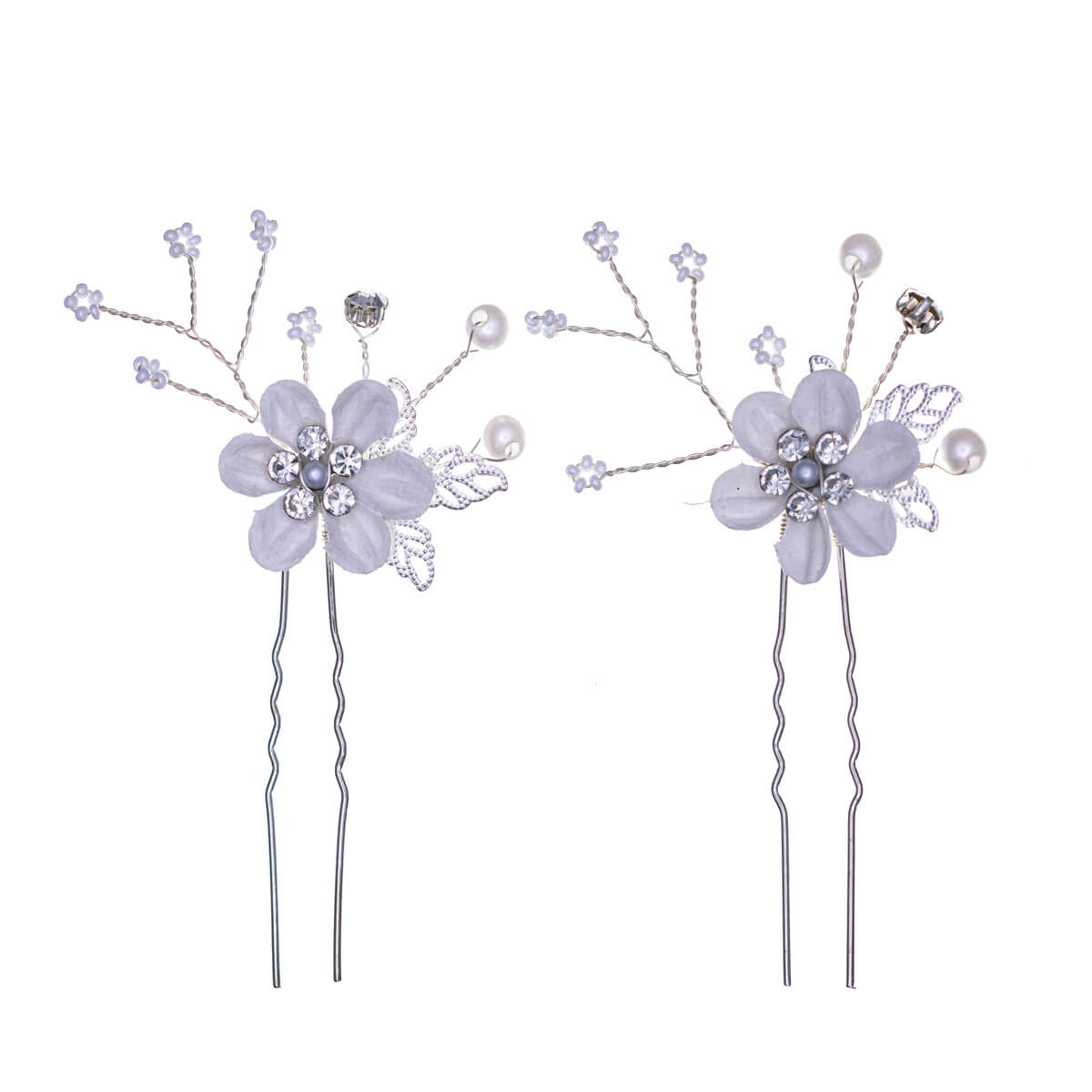 1. Small flower hair accessory (2 pcs) – a delicate hair accessory decorated with glass beads and metal leaves, perfect for the side of your hairstyle or around a bun.