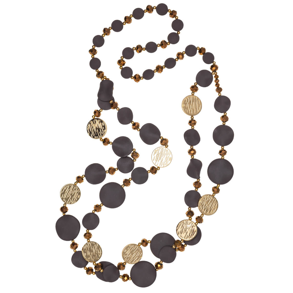 The long necklace is an elegant piece of jewellery for any outfit. In this model, the necklace becomes a double row halfway through the jewel.