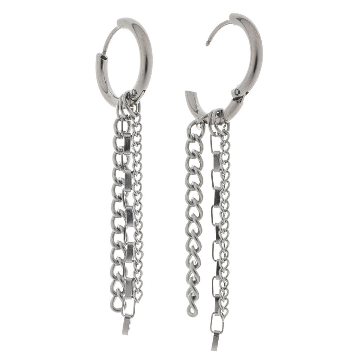 These stylish chain earrings add attitude and a sharp look to your style. Three different chains hang from the earring, creating a striking yet balanced look.