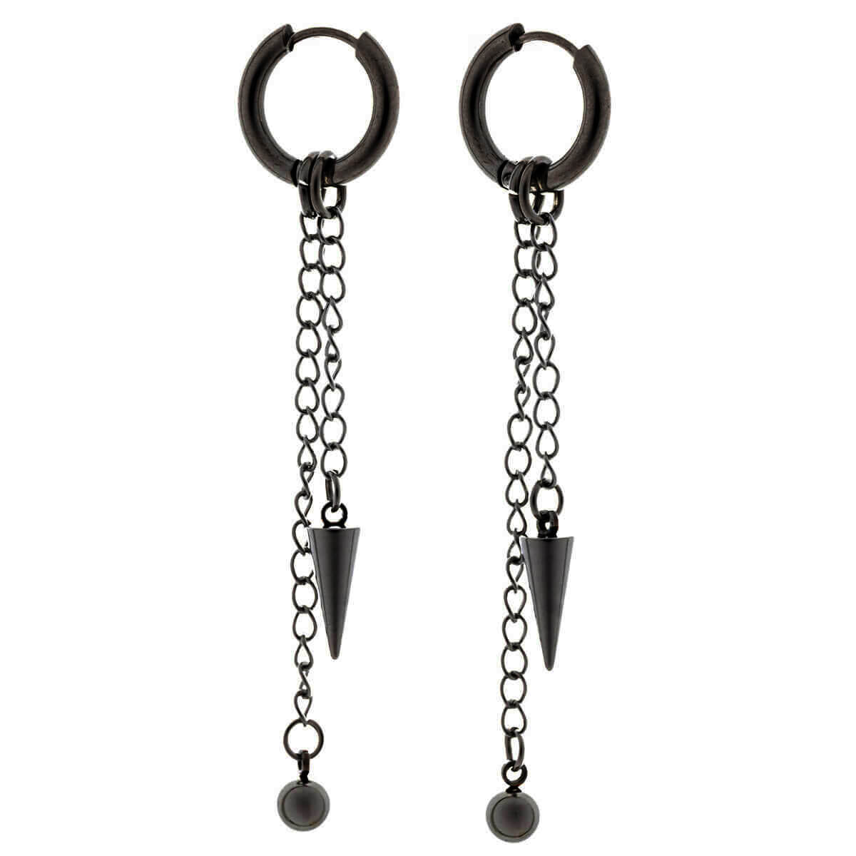 Ear rings with chain & spike and ball pendants – surgical steel (316L)