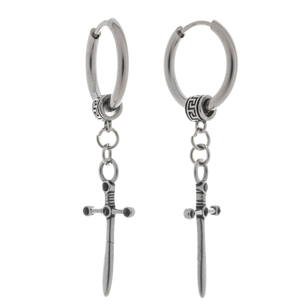 Men's earrings with dagger pendant - surgical steel