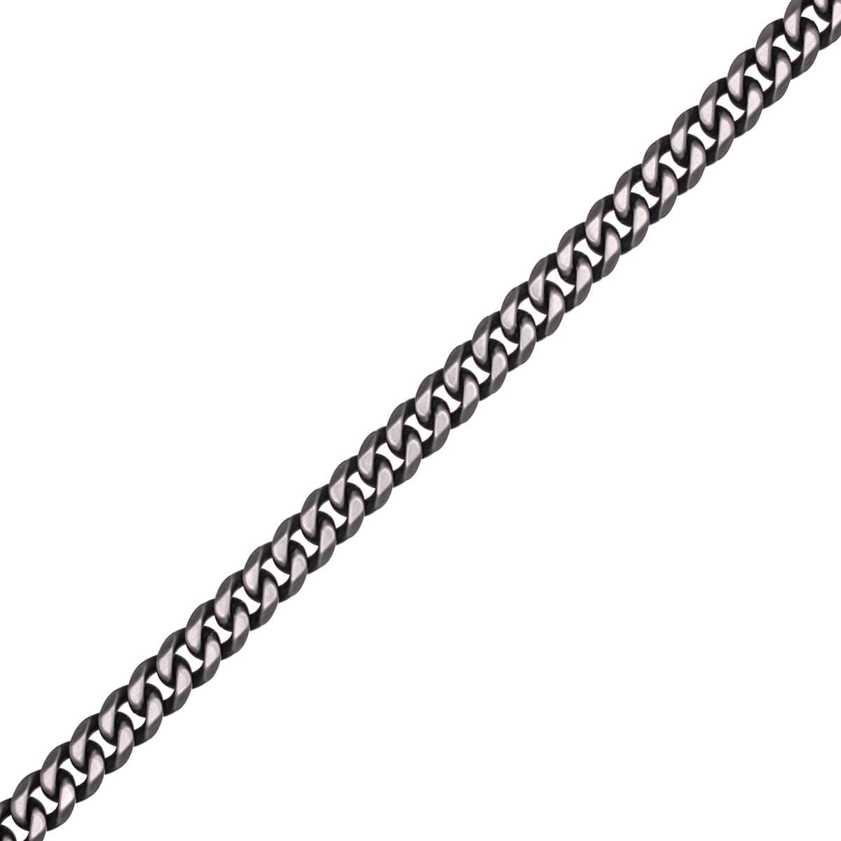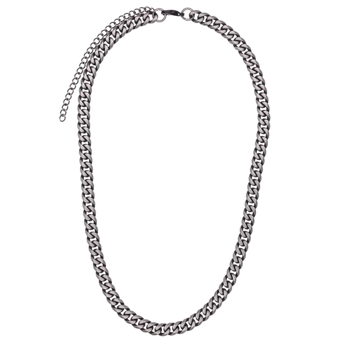 A stylish armoured chain is sure to be noticed around the neck. This model has a brushed steel surface and matt black inner edges of the links. The necklace has an extension chain to adjust the length of the necklace. The extension chain can also be removed if necessary.