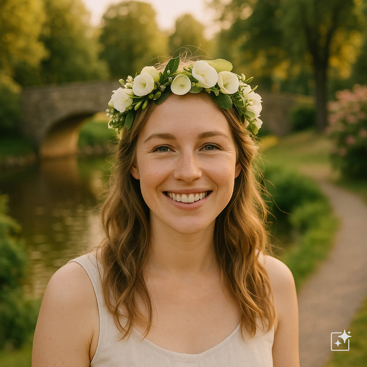 A Midsummer wreath for hair is usually made of fresh flowers and green leaves. Typically, the flowers of a midsummer wreath are yellow, white and red. However, you can also use other flowers such as pansies, tongues, dandelions or daisies, which are common Midsummer flowers.