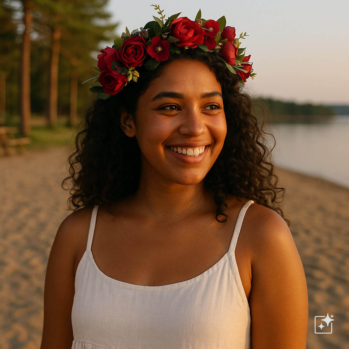Midsummer wreaths in hair are a lovely way to decorate your hair and celebrate the midsummer festival. It's perfect for more casual parties and gives your midsummer look a beautiful finishing touch. A floral hairband is a sturdy choice for Midsummer. The great thing about artificial flowers is that you can wear the braid for several days. Also, the wreath stays on much better than a wreath made from real flowers.