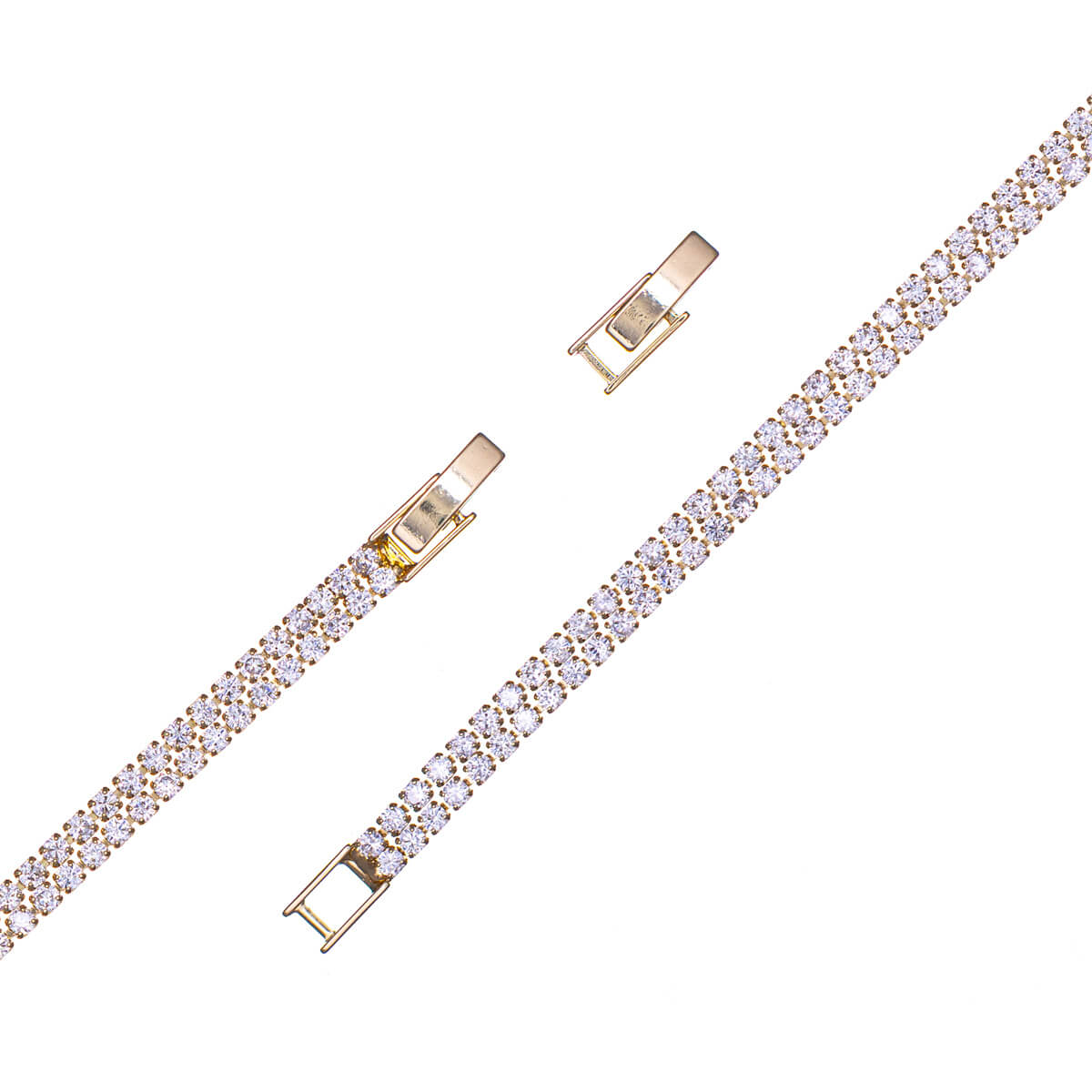 - Double-row tennis bracelet with round zirconia stones