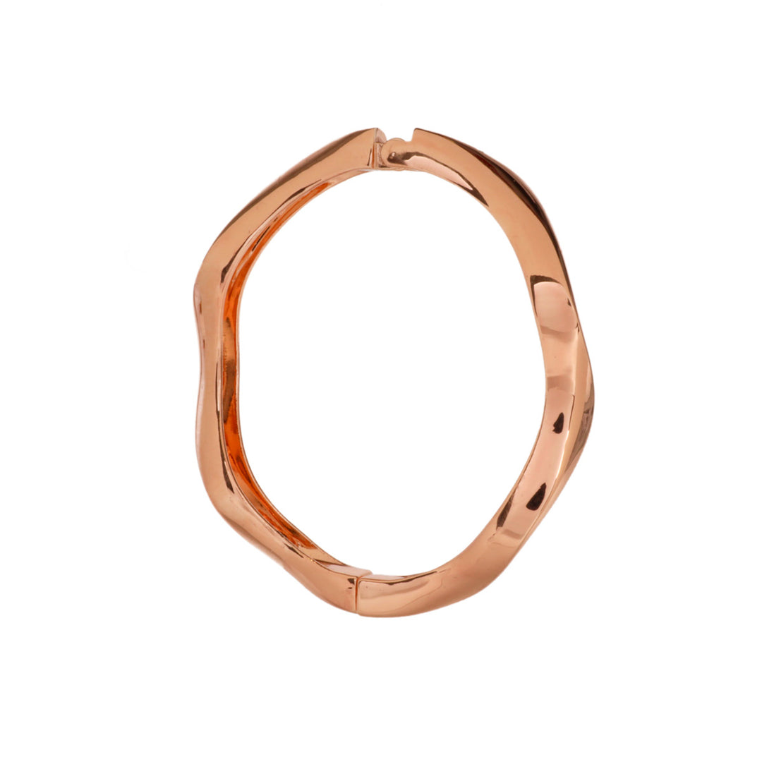 Pelkistetty tyylikäs rannekoru, missä rannekoru aukeaa saranasta.