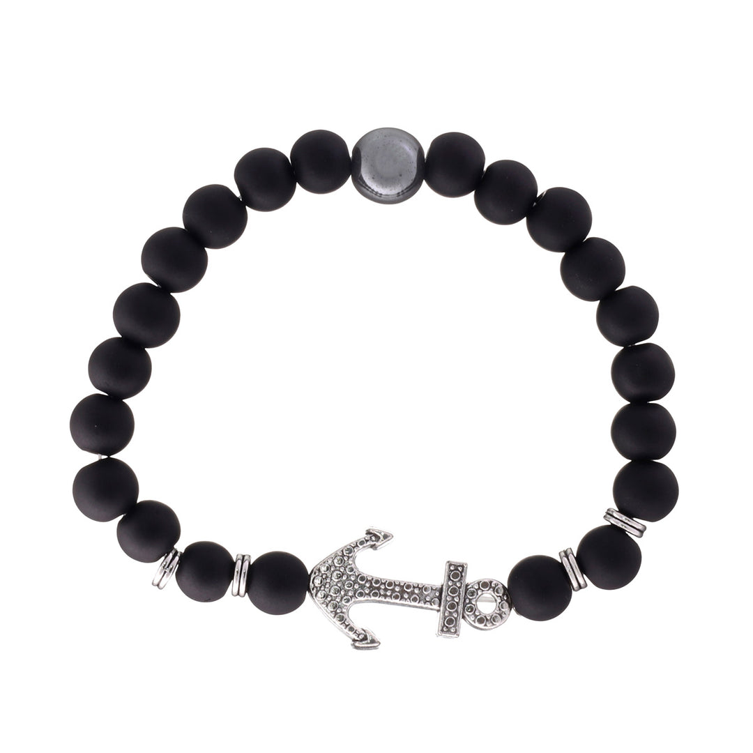 Mustat mattaiset helmet sopivat mainiosti hopeisen ankkurin kanssa.