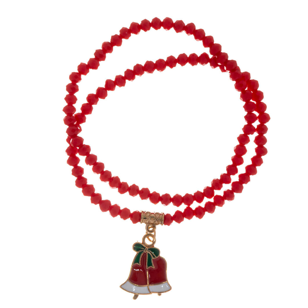 Viisteiset pienet lasihelmet kimaltelevat kauniisti tässä rannekorussa. Paketissa on kaksi rannekorua, missä toisessa on jouluinen riipus koristeena.
