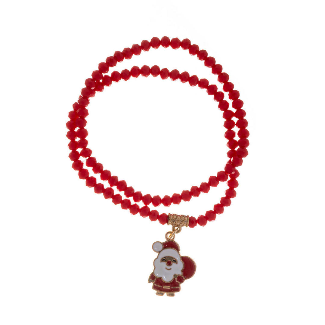 Viisteiset pienet lasihelmet kimaltelevat kauniisti tässä rannekorussa. Paketissa on kaksi rannekorua, missä toisessa on jouluinen riipus koristeena.