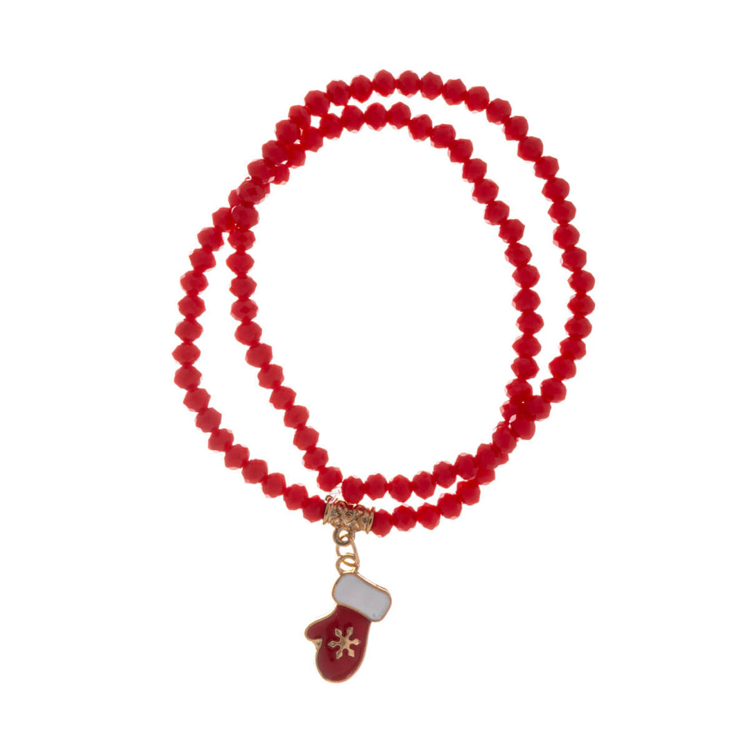 Viisteiset pienet lasihelmet kimaltelevat kauniisti tässä rannekorussa. Paketissa on kaksi rannekorua, missä toisessa on jouluinen riipus koristeena.