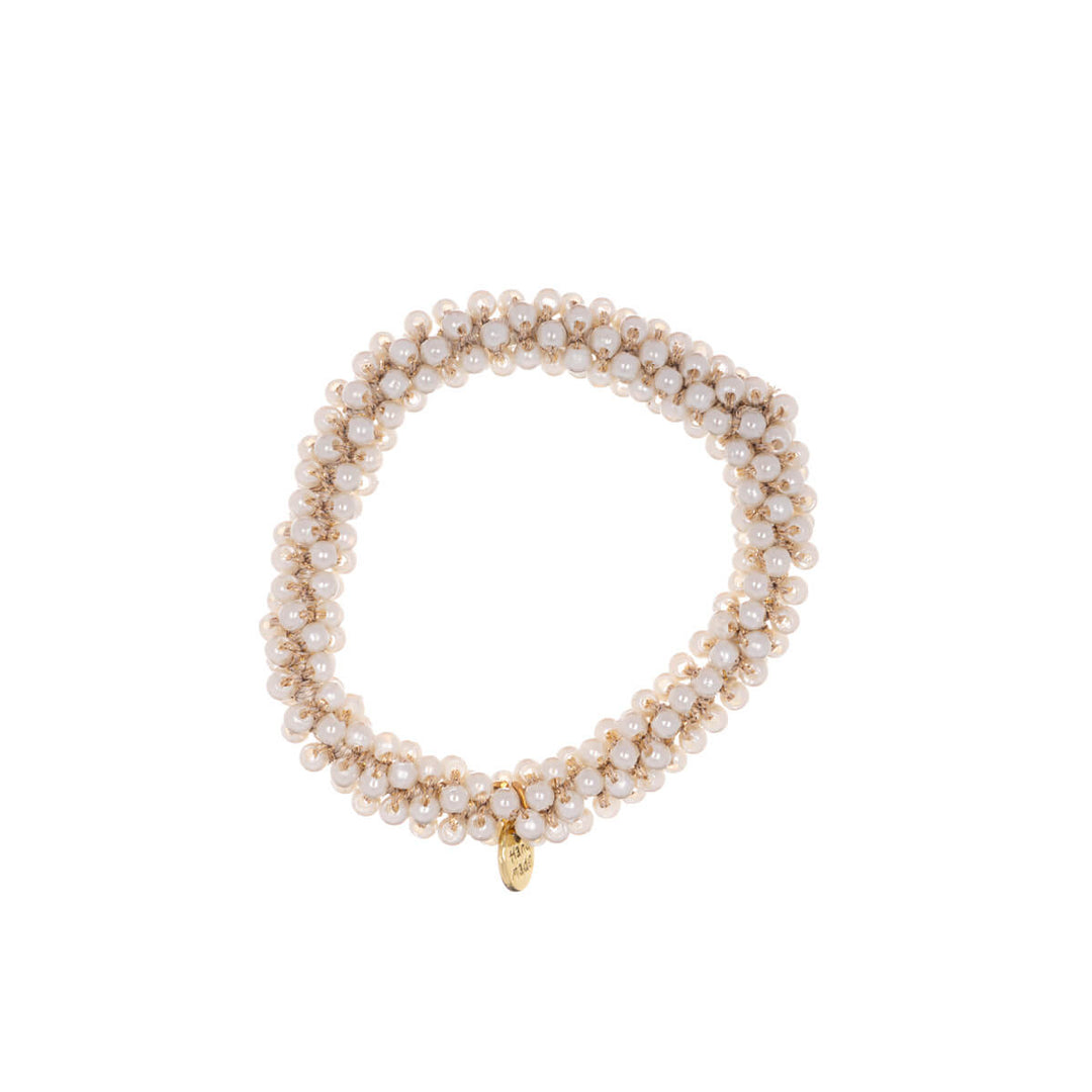 Pienillä helmillä koristeltu hiuslenkki on kaunis koristus arkiseen ponihäntään ja myös juhlavampaan hetkeen.