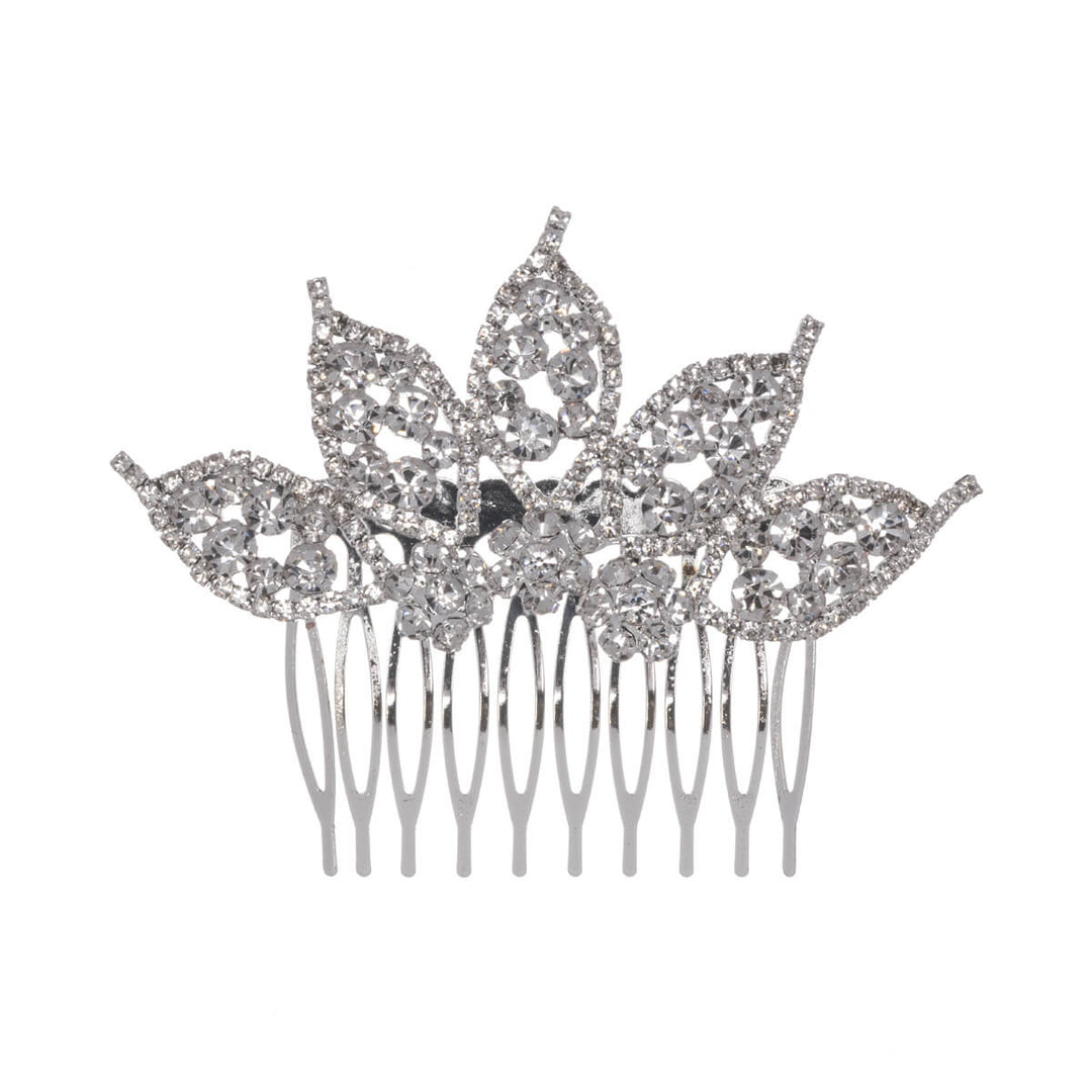 Näyttävä hiuskoru on koristeltu kirkkain lasikivin. Kammallisen hiuskorun kiinnität helposti kampaukseen.