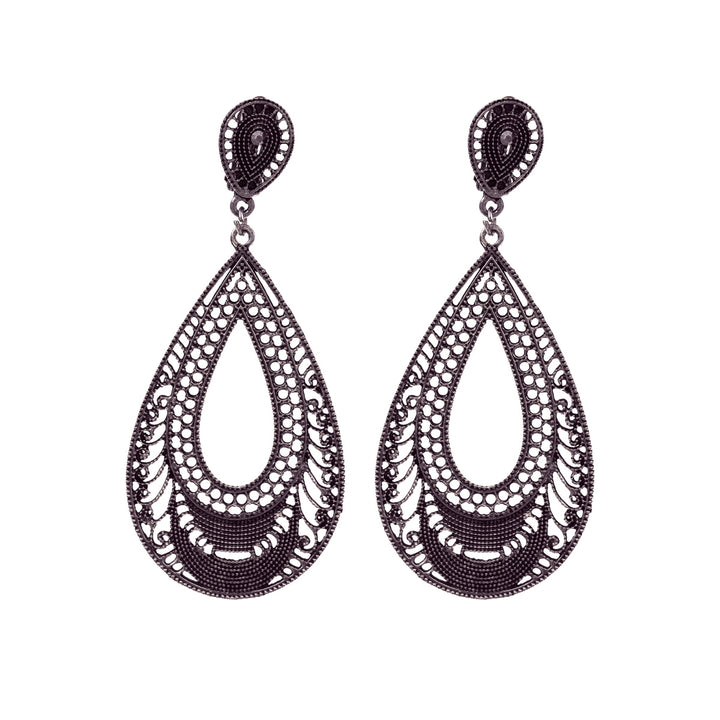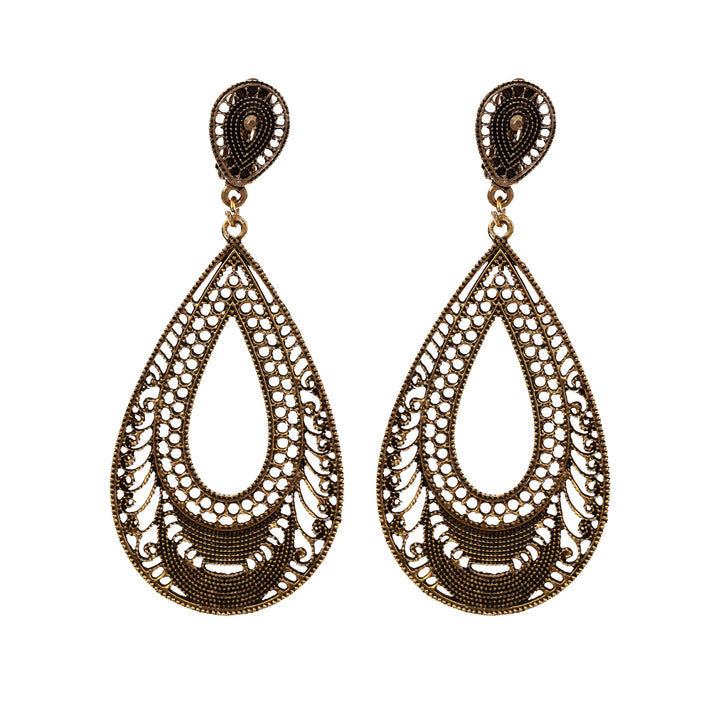 Näyttävän kokoiset ovaalit roikkuvat klipsikorvakorut ovat kauniisti kuvioitu. Metallissa on hillitty antiikin viimeistely. Metalli on tarpeeksi ohutta, ettei korvakoru paina paljoa.