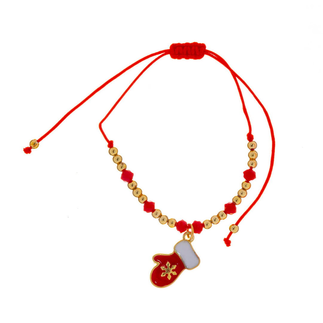 Ohueseen punaiseen naruun punotut punaiset viisteiset helmet kimaltelevat kauniisti. Minimalistinen rannekoru on helppo laittaa ranteeseen ja kiristää nauhoista tiukemmalle.