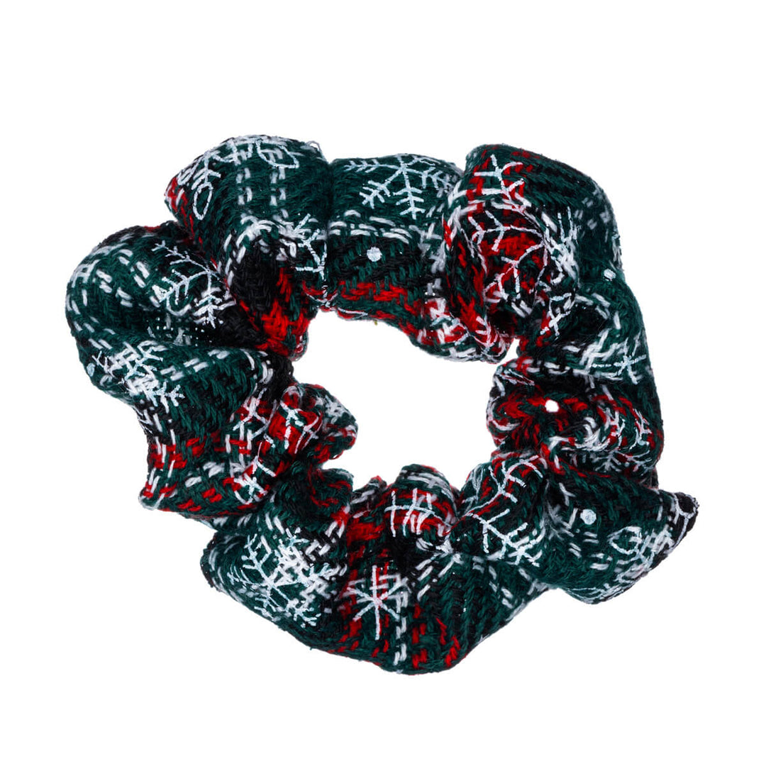Kaunis jouluinen scrunchie on varma valinta kun haluaa jotain sesonkiin. Kankaassa on kaunis ruudullinen kuositus hopeisin langoin koristeltuna. Tähdet ja lumihiutaleet viimeistelevät jouluisen kuosin.