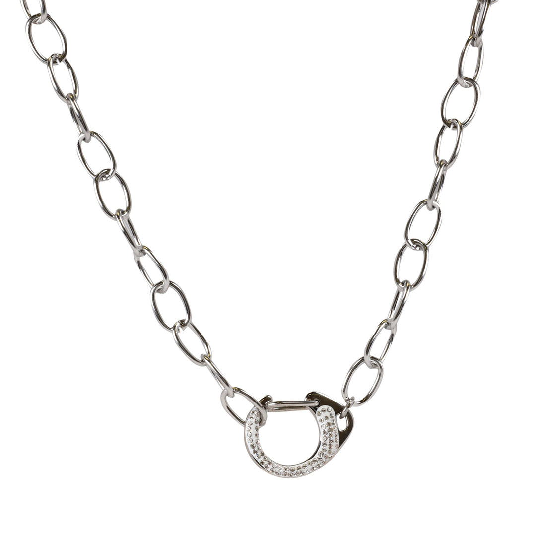 Trendikkäässä kaapeliketjussa on lasikivin koristeltu pikalukko. Koru on kokonaan kirurginteräksestä.