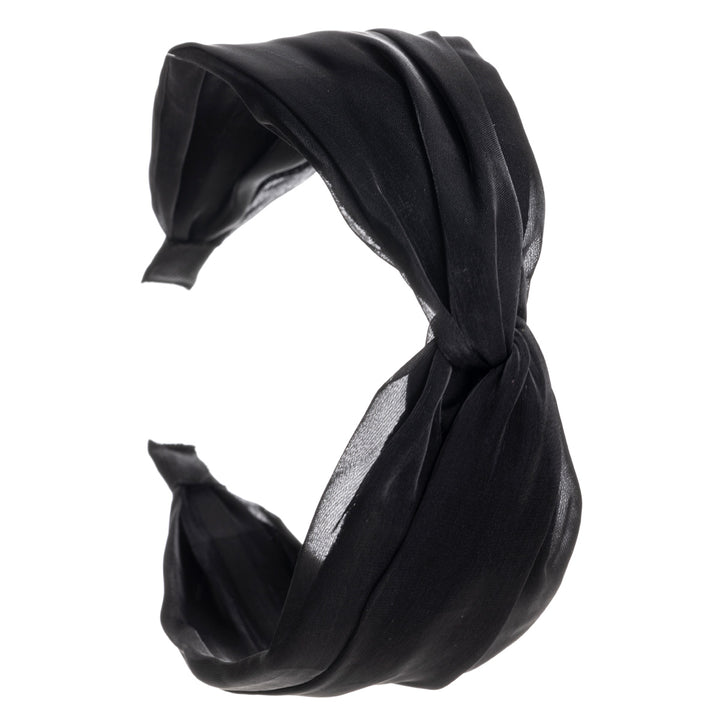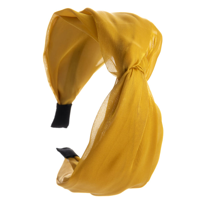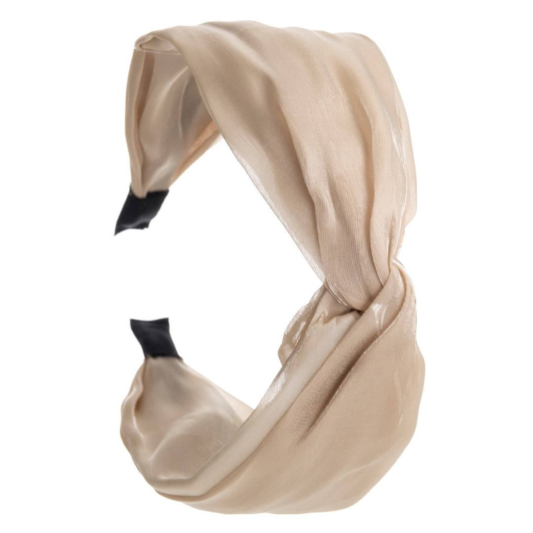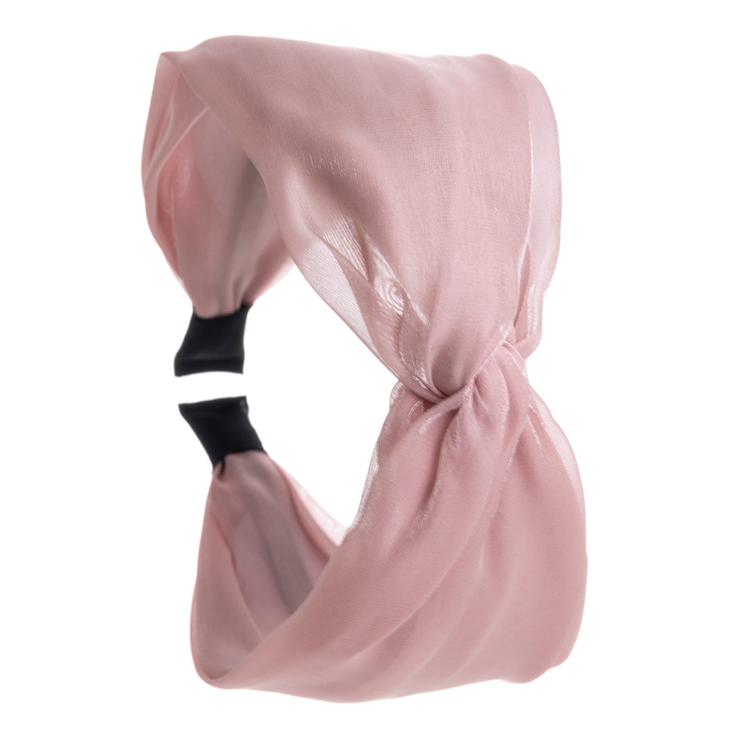 Ihana satiininen kangas todellakin kiiltää tässä pannassa. Panta tekee solmun keskellä pantaa.