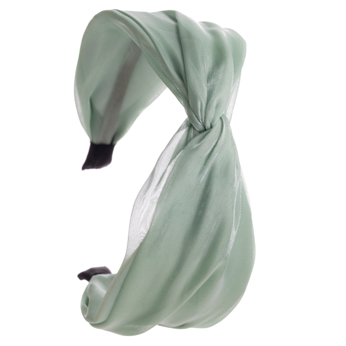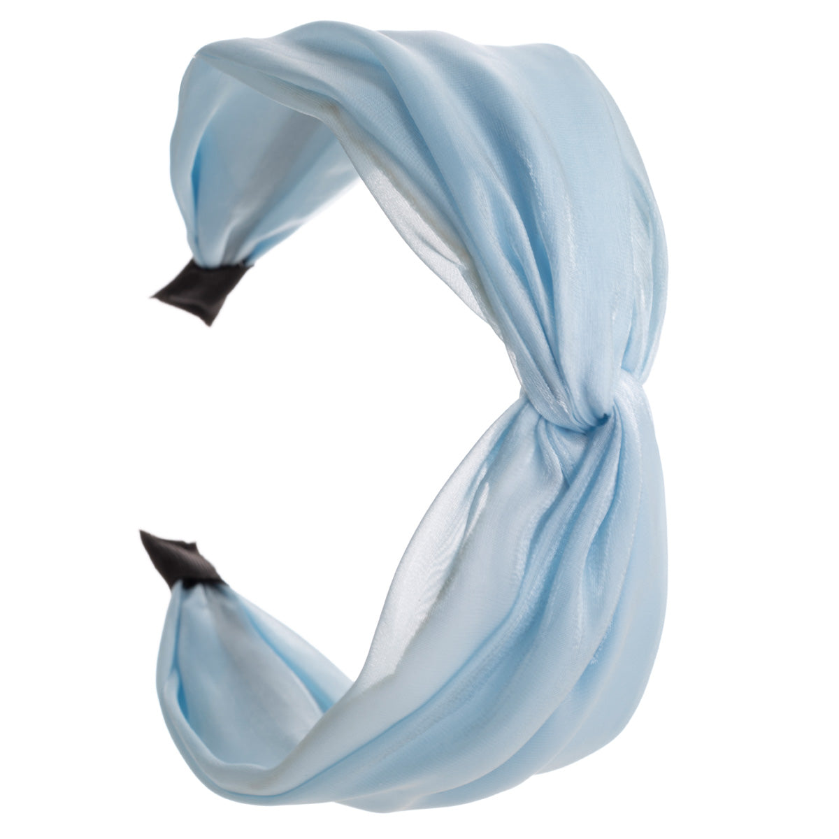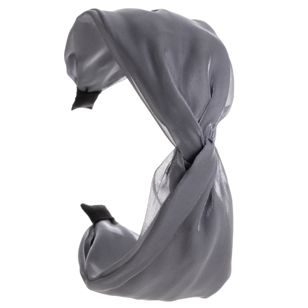 Ihana satiininen kangas todellakin kiiltää tässä pannassa. Panta tekee solmun keskellä pantaa.