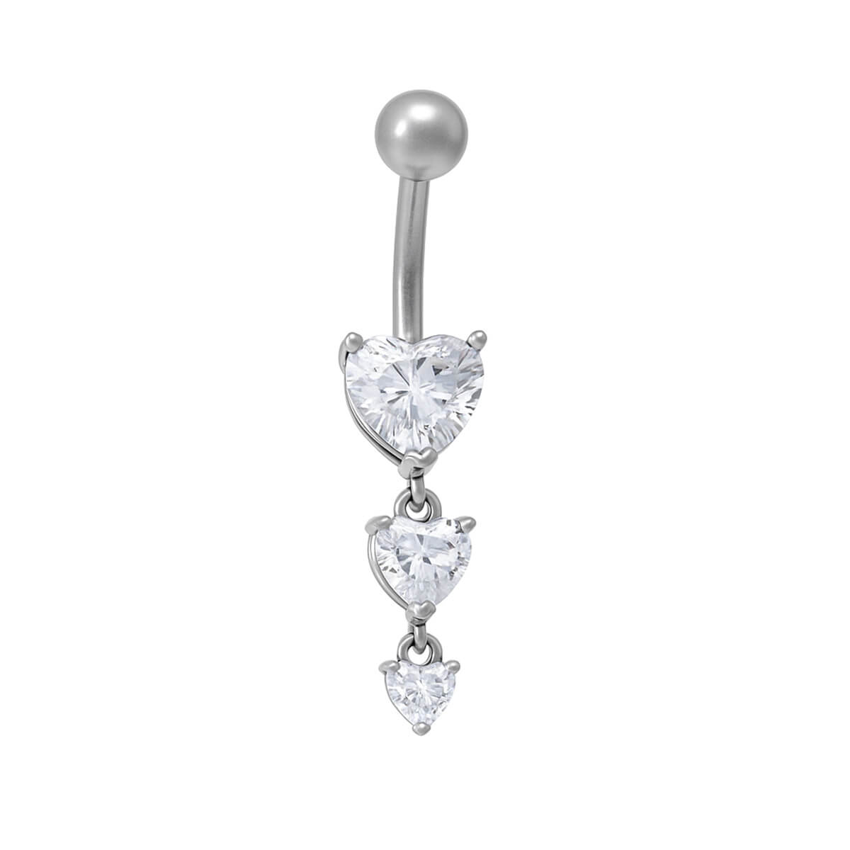 Tyylikkät sydämen muotoiset zirkonia kivet muodostavat kauniin roikkuvan napakorun. Runkona riipuksessa on kestävä kirurginteräs. Koru on valmistettu kokonaan kirurginteräksestä, jolloin ei myöskään riipus kulu käytössä.