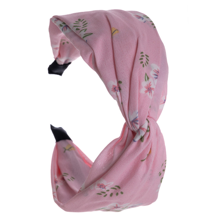 Kauniit kukat koristavat tätä leveää hiuspantaa. Panta tekee solmun keskellä pantaa.