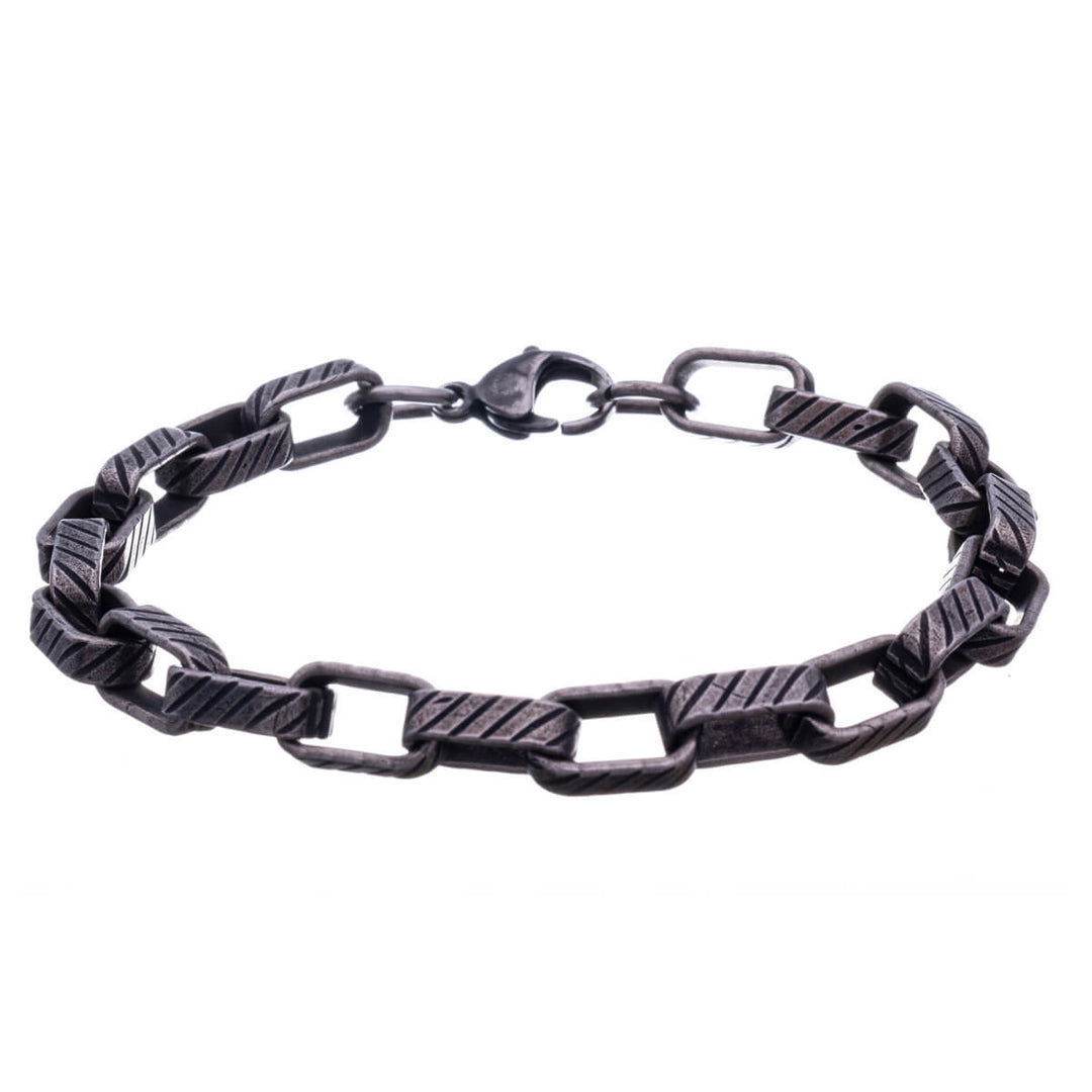 Kuvioitu tumma teräsketju rannekoru 22cm (Teräs 316L)