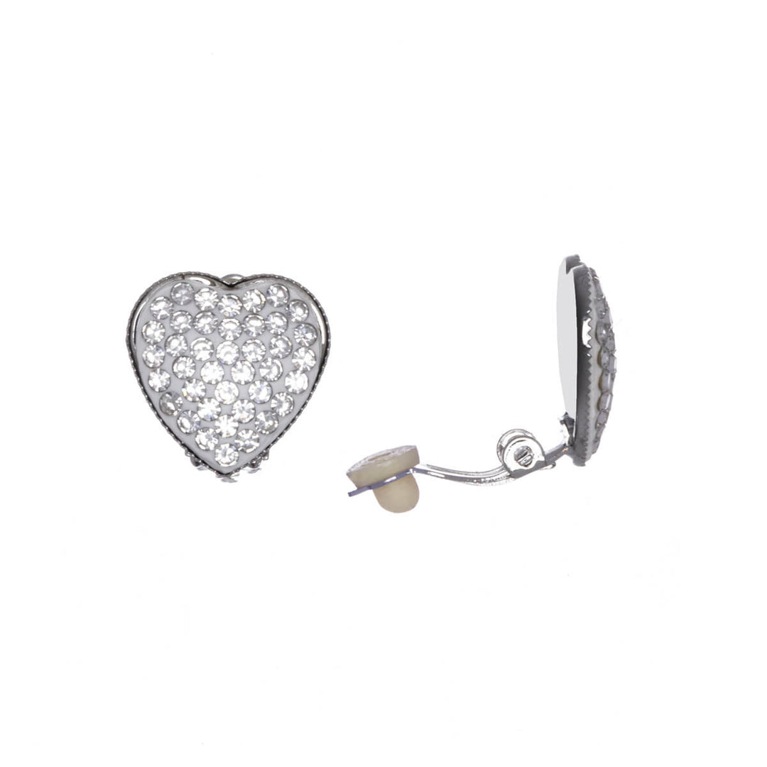Kimaltavat sydän korvakorut tulevat varmasti huomatuksi. Kirkkaat lasikivet ovat upotettu valkoiseen massaan tukevasti.
