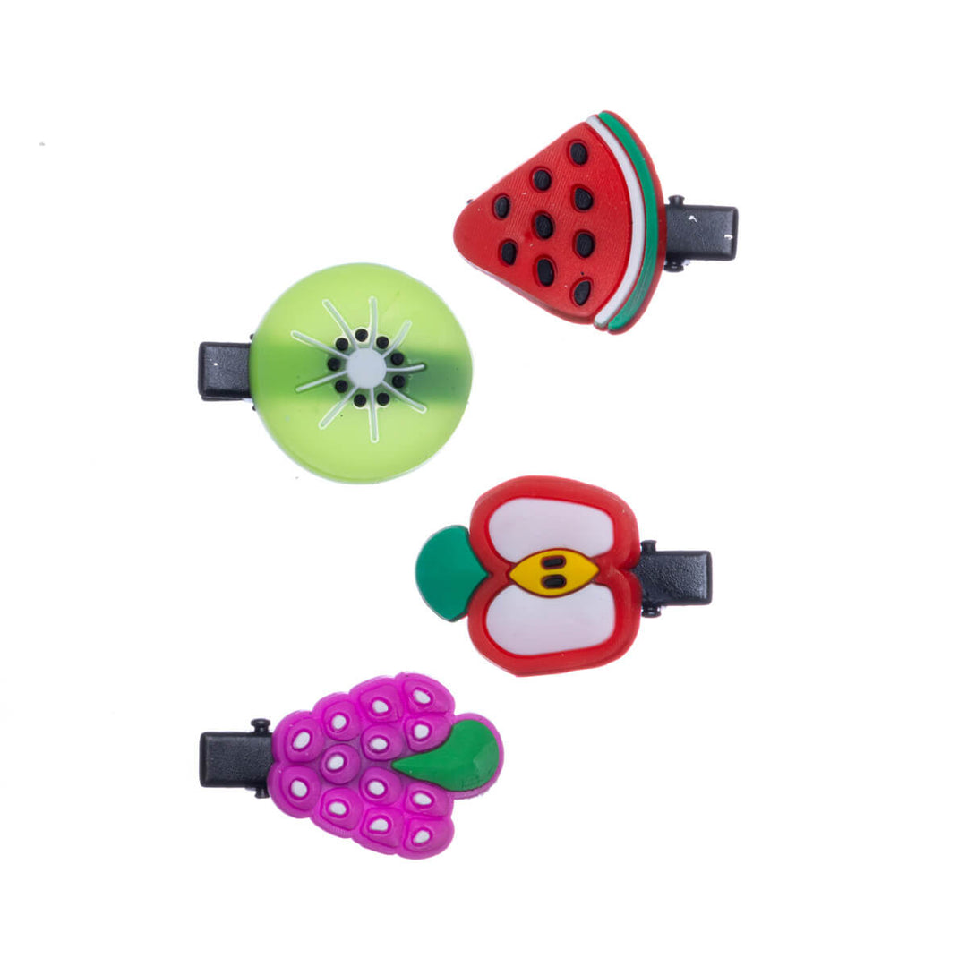 Värikäs hedelmä teemainen hiusklipsi pakkaus. Neljällä pirteällä hiusklipsillä saat varmasti koristeltua hiukset.
