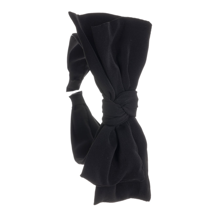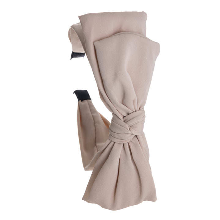 Iso rusettipanta on todellakin tulossa takaisin. Tässä mallissa leveässä pannassa on näyttävä kaksikerroksinen rusetti. Rusetissa on rautalanka sisällä, joten sen muotoa voi muokata.