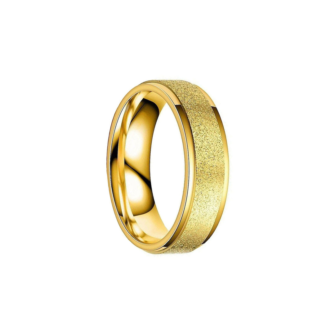 Yksinkertainen kimalteleva kullattu terässormus on kaunis koru. Pinta ei ole harjattu vaan rikottu niin, että se kimaltelee kauniisti.