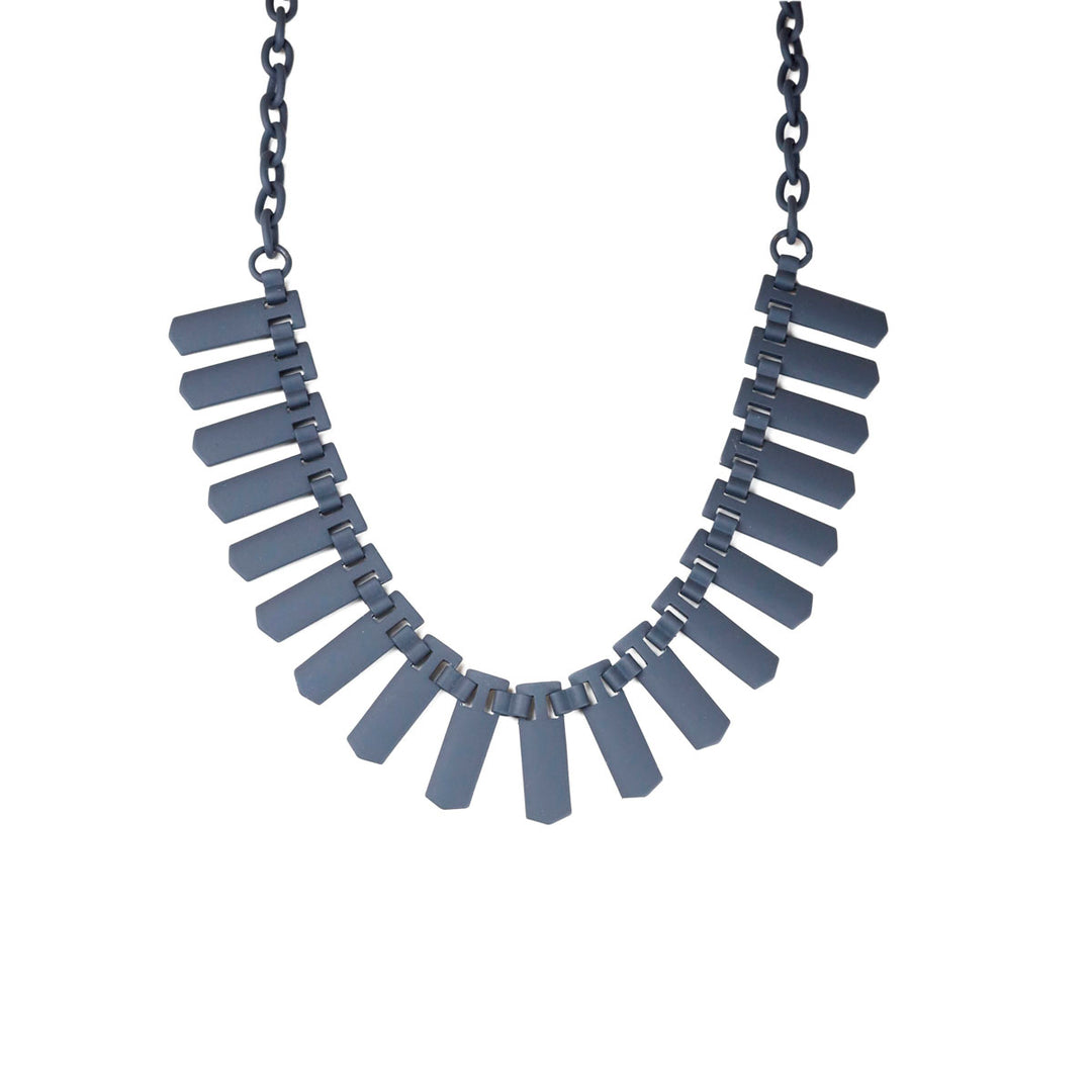 Tyylikäs mattapintainen kaulakoru on pelkistetty kaunis yksityiskohta. Metallinen kaulakoru on kumipinnoitettu, mikä tekee pinnasta kauniin mattaisen.