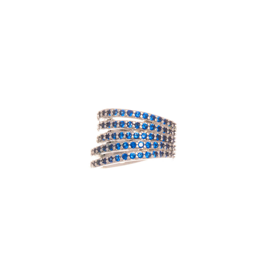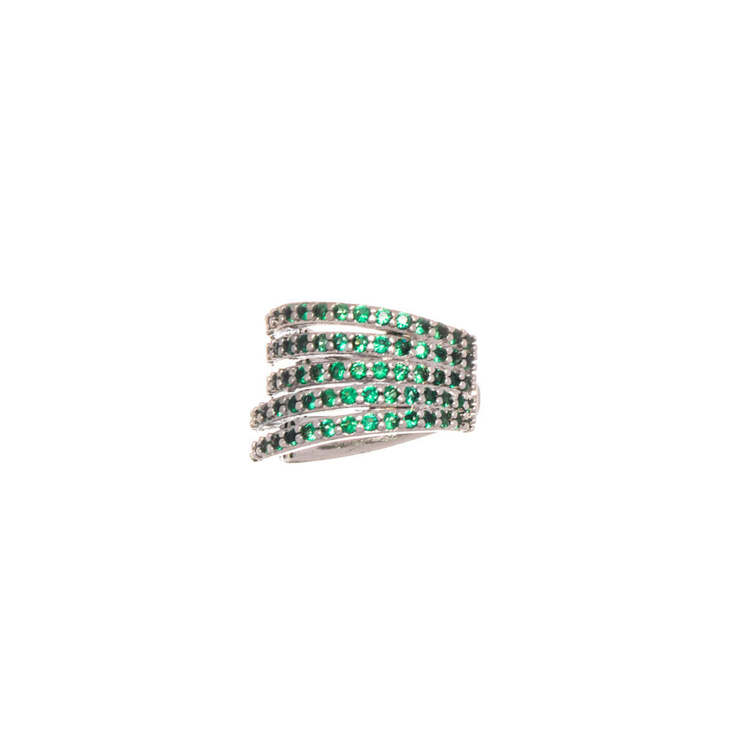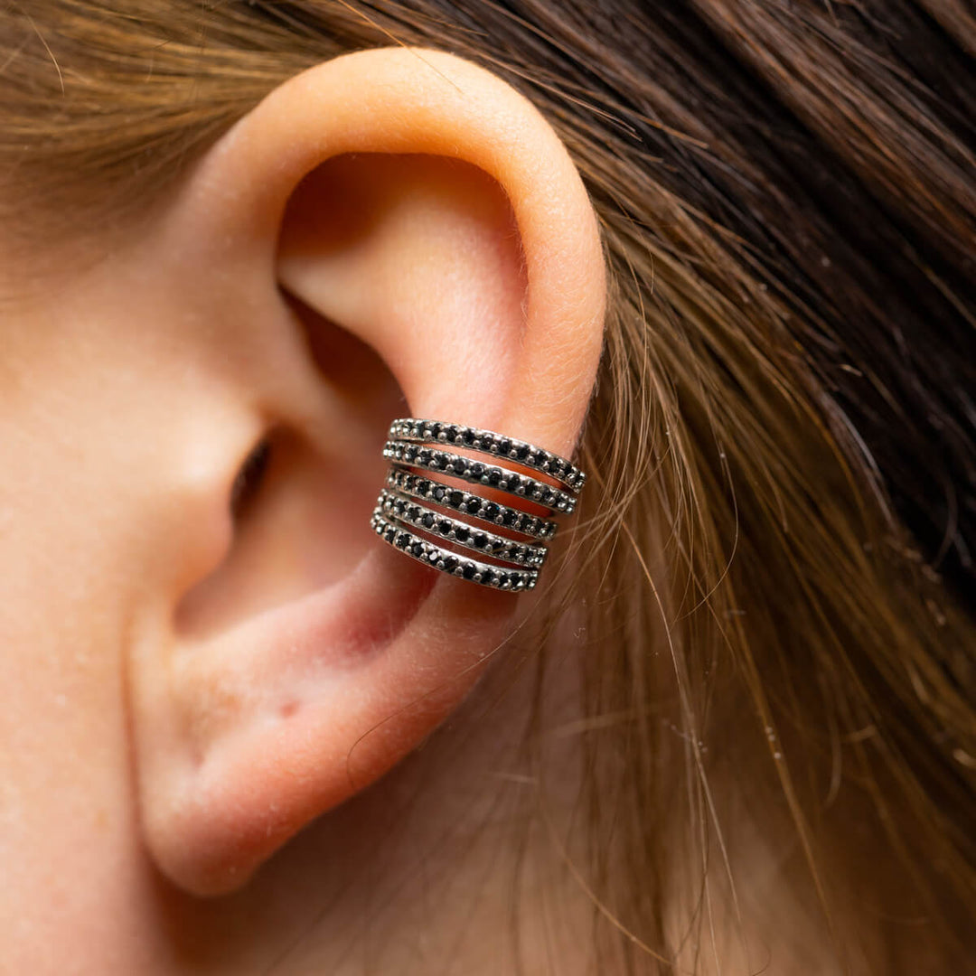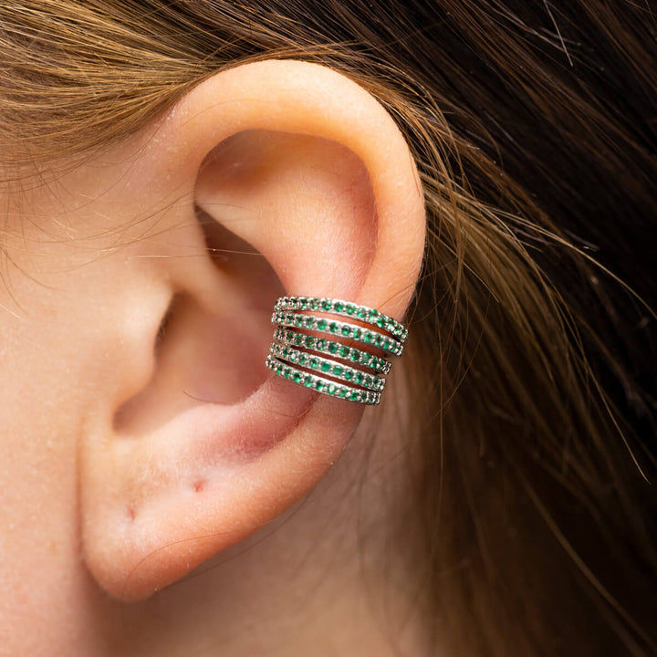 Ear cuff on tyylikäs koru rustoon. Monivärisillä zirkonia kivillä koristeltu viisirivinen rustokoru näkyy varmasti korvasta.