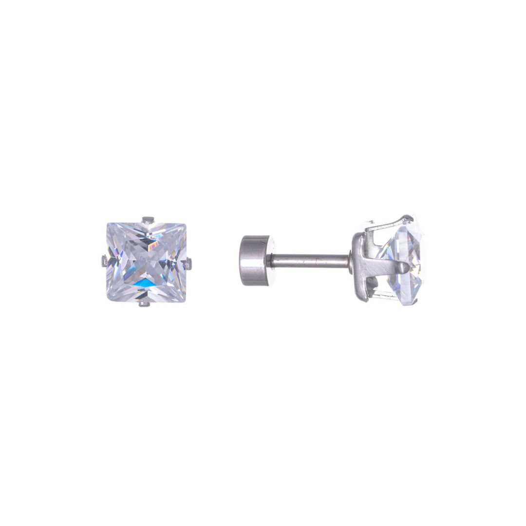 Neliö zirkonia ruuvattavat korvakorut 7mm (teräs 316L)