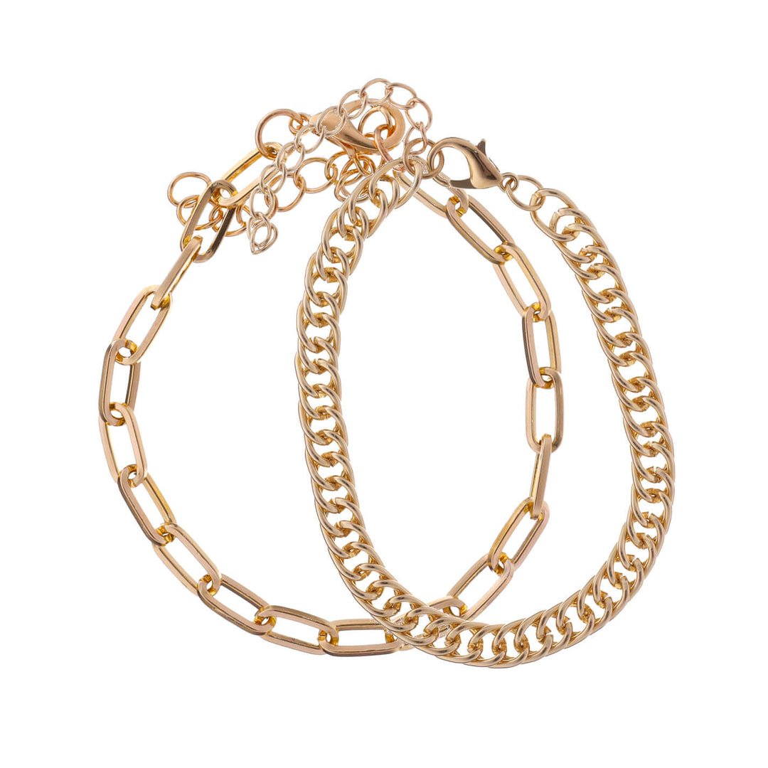 Kahden rannekorun nippu antaa tyylikkään näön ranteeseen. Kaapeliketju sopii mainiosti panssariketjun kumppaniksi ranteeseen.