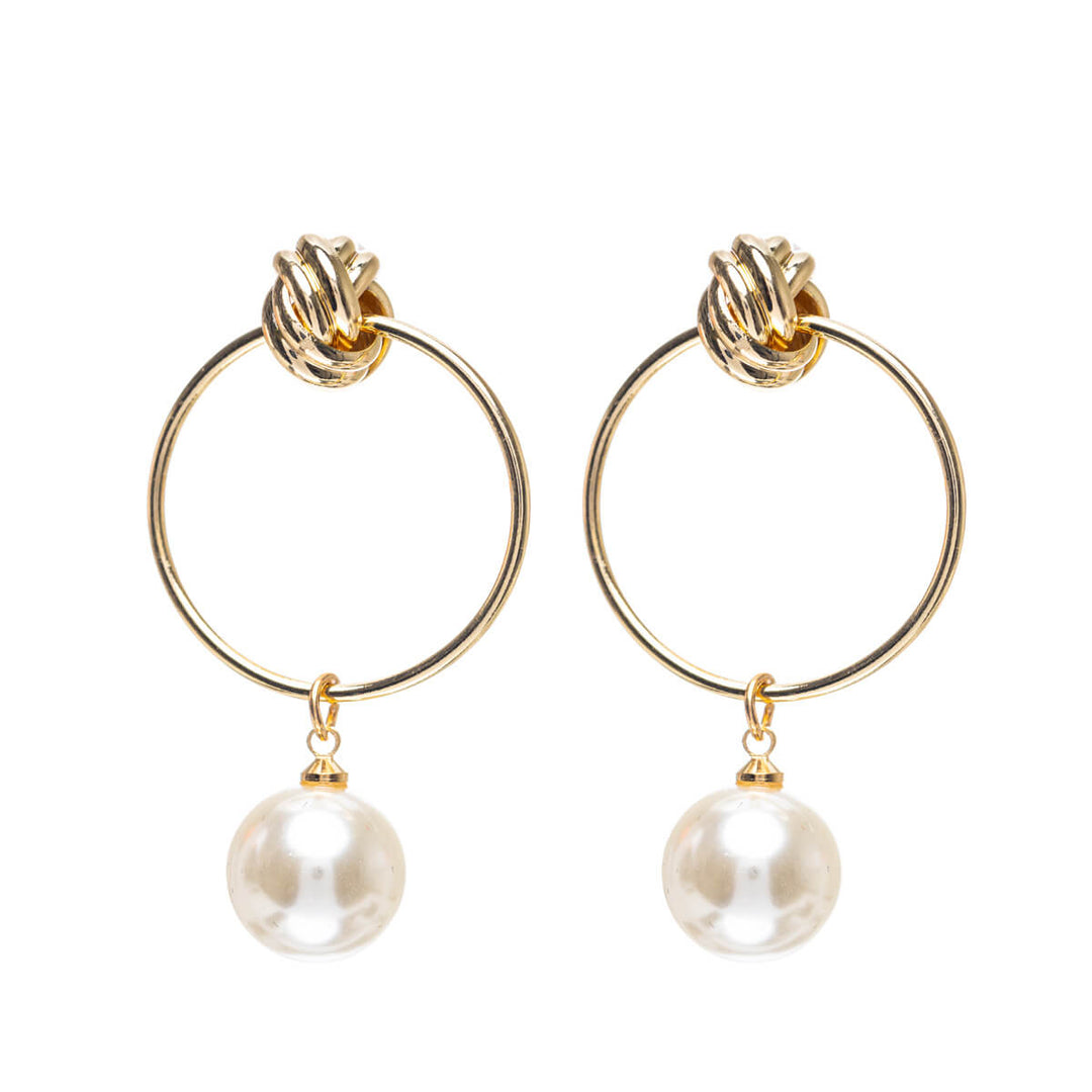 Kevyet helmi korvakorut ovat koristeltu tyylikkäällä yksityiskohdalla. Rengas roikkuu korussa metallisesta solmusta.