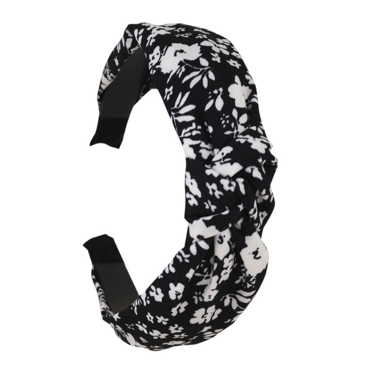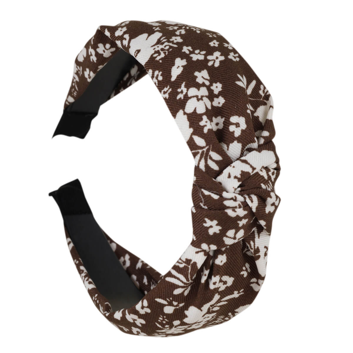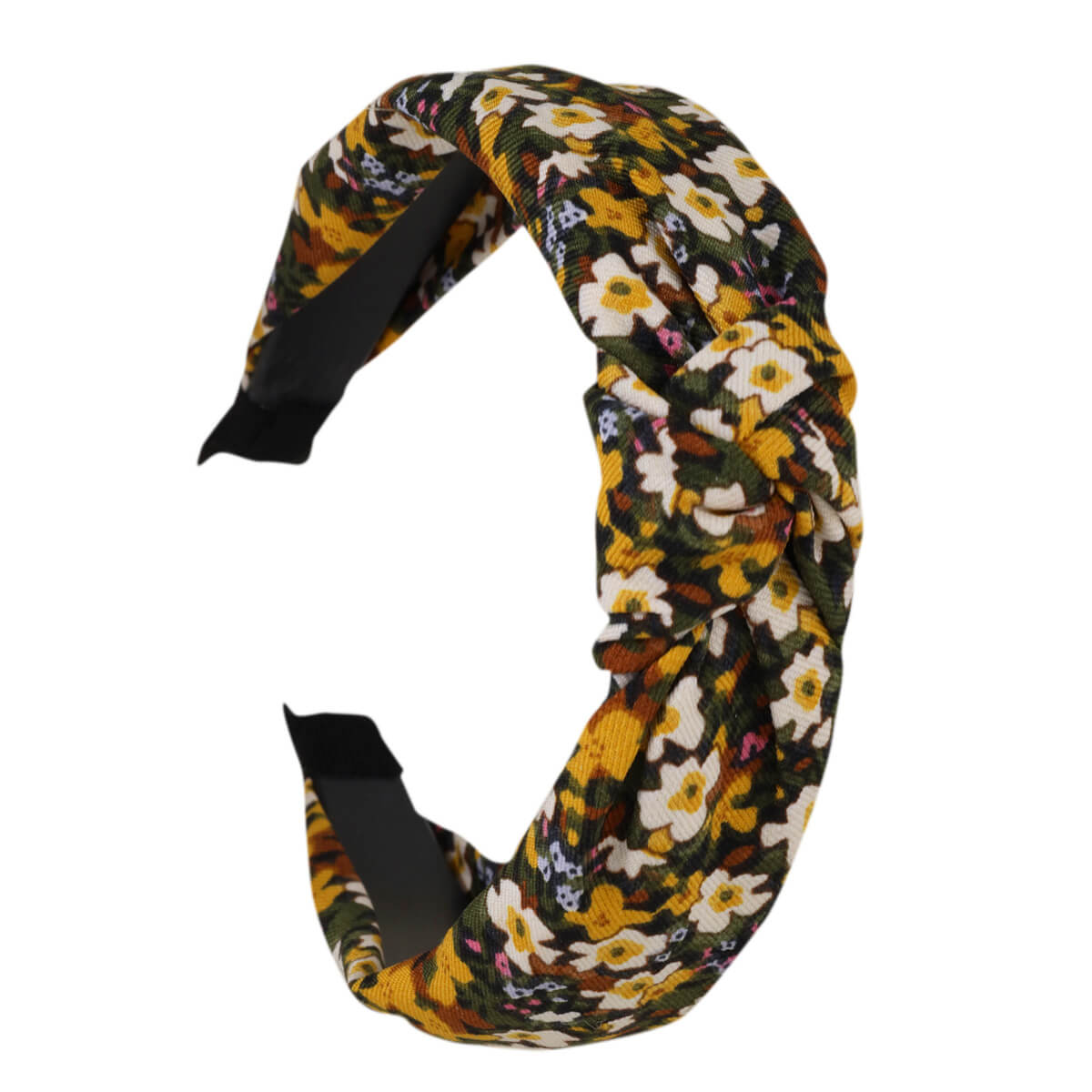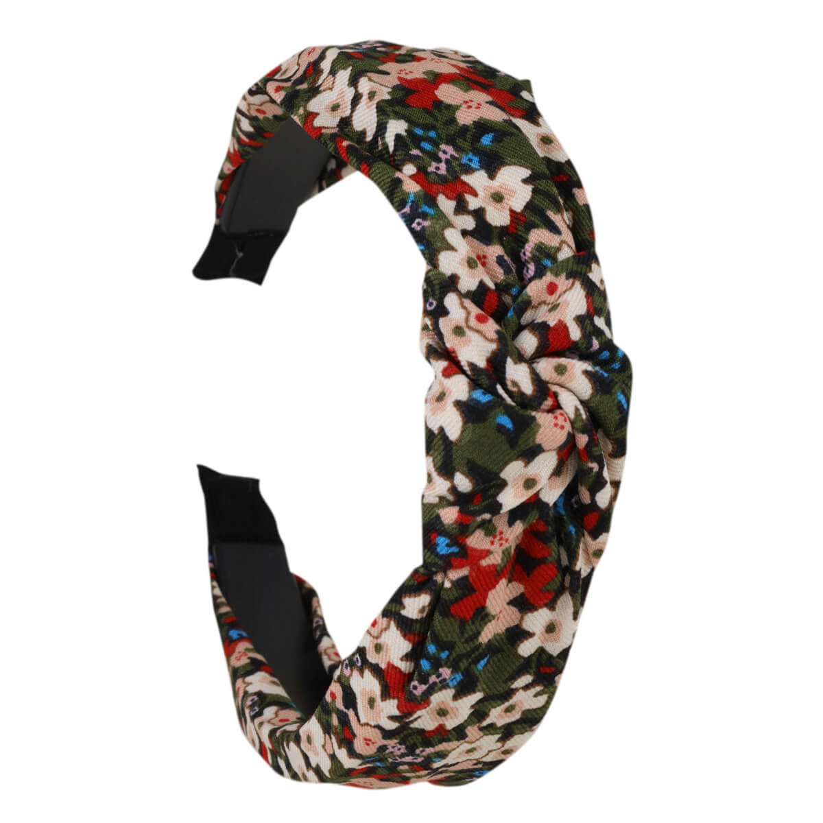 Suosittu leveä pääpanta, missä on solmu keskellä. Muovisen pannan päällä oleva kangas on mattapintainen ja kukkakuvioitu. Kukka hiuspanta vie sinut kertaheitolla takaisin 60-luvun ja 70-luvun muotiin.