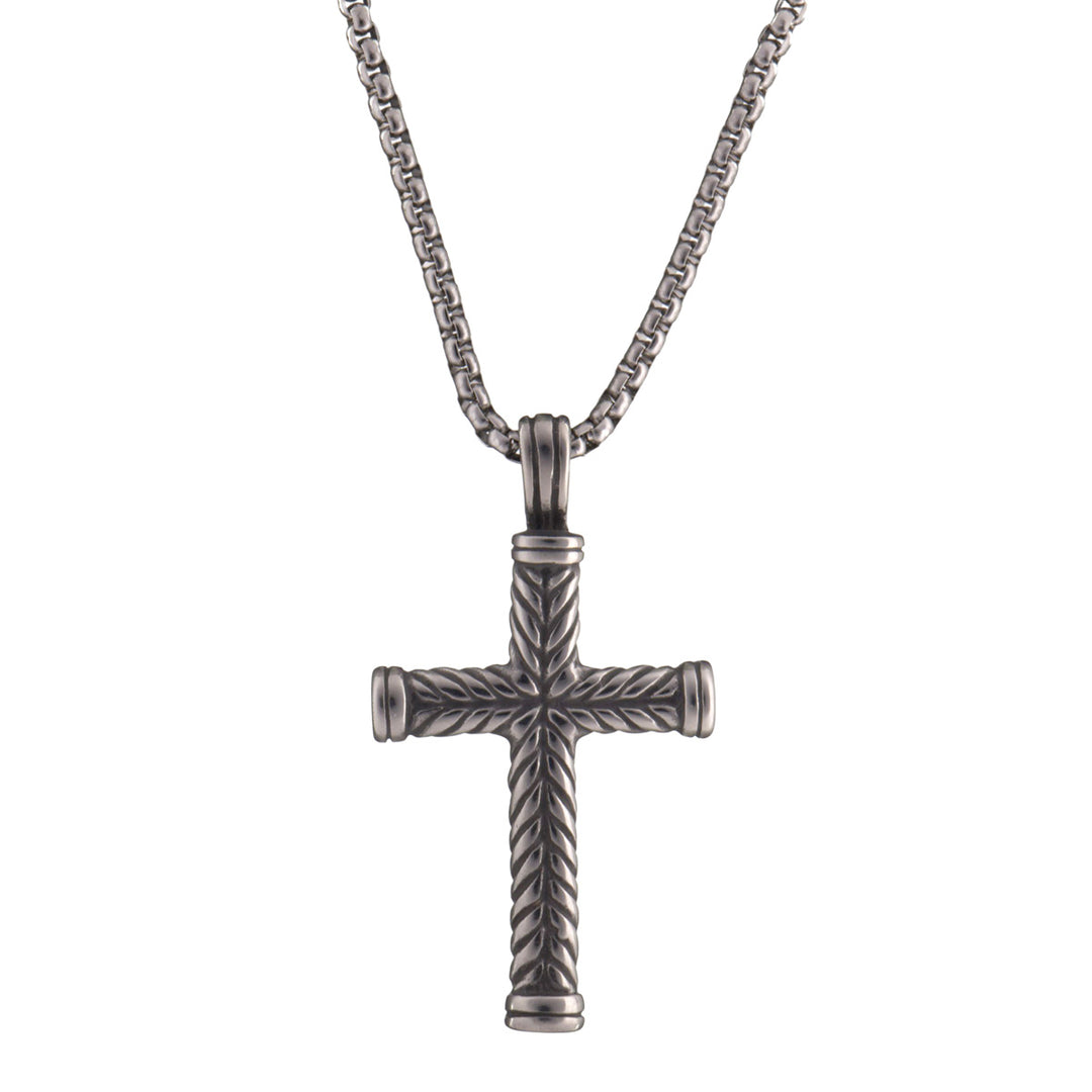 Teräksinen risti kaulakoru on helppo koru jokapäiväiseen käyttöön. Tässä mallissa ristin pinta on kauniisti kuvioitu.