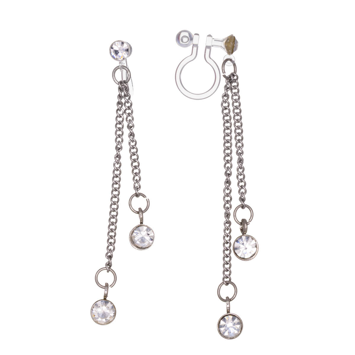 Ketju klipsikorvakorut ovat koristeltu ketjun päissä roikkuvilla lasikivillä. Klipsimekanismi on todella huomaamaton ja miellyttävä käyttää.