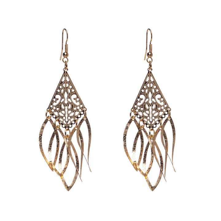 Ohuet metalliset korvakorut eivät paljoa paina. Näyttävä pitkä malli on helppo käyttää myös arjessa.