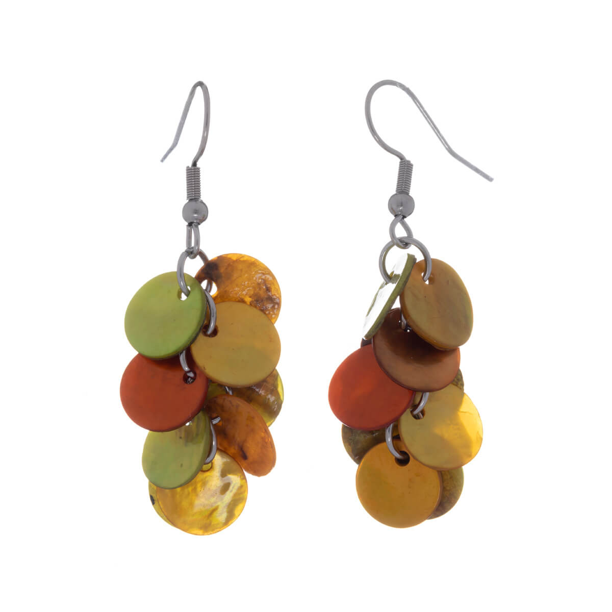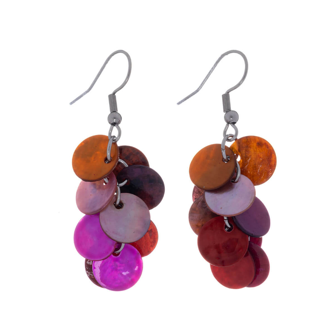 Moniväriset rypälemäiset korvakorut ovat oikea väripiristys asuun. Kaunis simpukkamassa on eloisa kaunis materiaali. Simpukkamainen pinta kimaltelee kauniisti valossa.